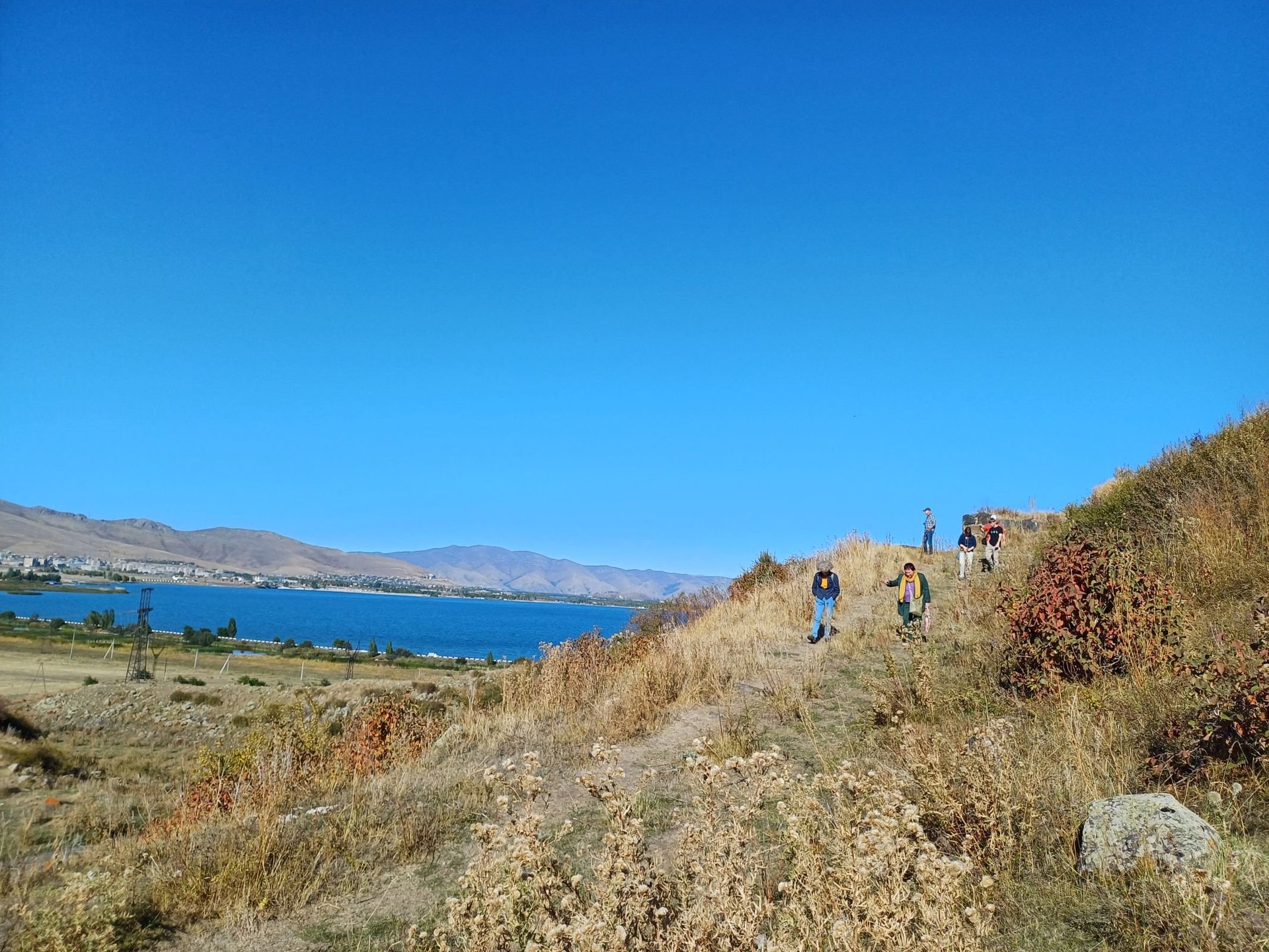 Weiterfahrt nach Ltschaschen, wo wir nach dem Gräberfeld mit seinen Wagenbestattungen aus der Bronzezeit suchen. Die Ausgrabungen sind zwar nicht mehr sichtbar, aber von der urartäischen Festung aus lassen sich die Dimensionen gut erahnen. Auch die Ausblicke auf den Sewansee sind großartig.