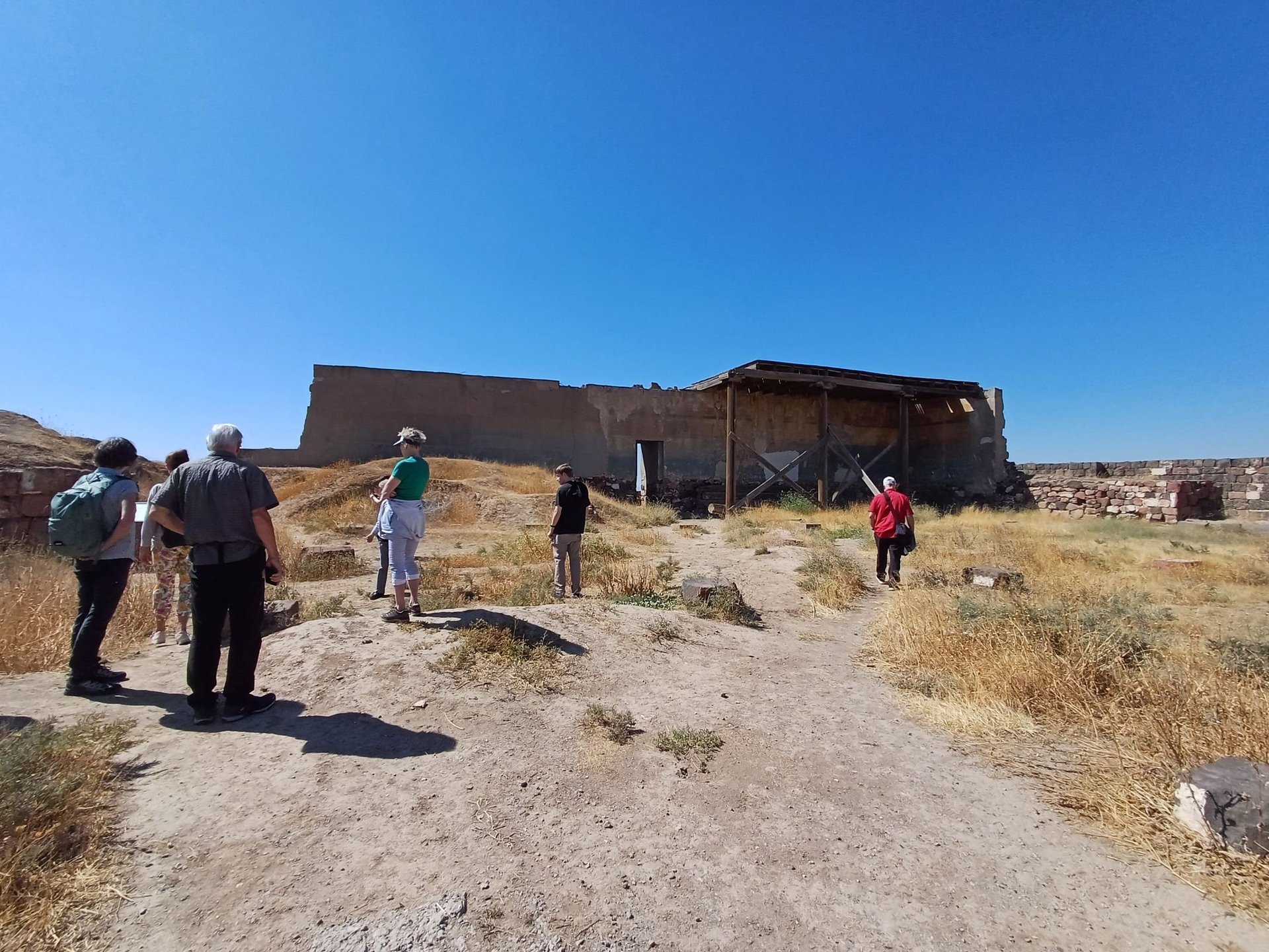 Am Nachmittag fahren wir nach Karmir Blur, einer weiteren urartäischen Stadt. Der "Rote Hügel" trägt seinen Namen aufgrund der durch Feuer rot verfärbten Lehmziegel. Eine Archäologin führt uns über das weitläufige Gelände und erzählt von aktuellen Grabungen und den Lebensumständen der Urartäer. Ein spannender Einblick in die archäologische Forschung vor Ort.