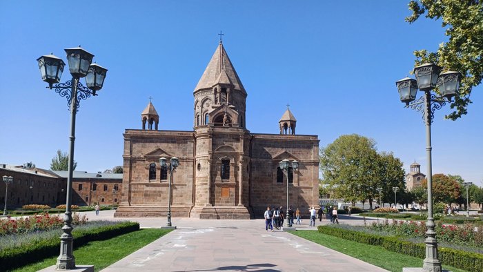 Weiter geht es nach Etschmiadsin, dem spirituellen Zentrum der armenisch-apostolischen Kirche. Hier erhalten wir spannende Einblicke in Kirchenstruktur, Ausbildung und religiöse Praxis.