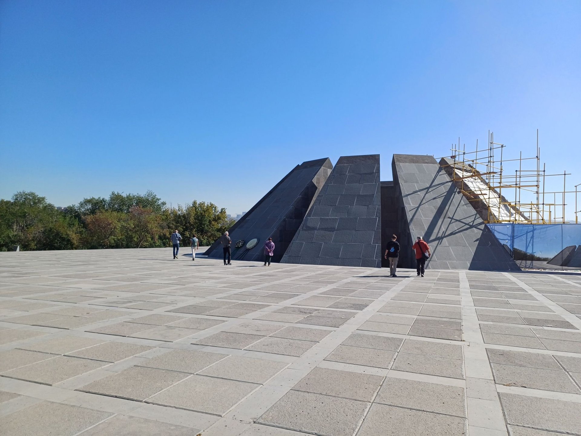 Heute steht ein ernster Programmpunkt an: Wir besuchen das Genozid-Memorial und erhalten eine bewegende Einführung in die tragische Geschichte des armenischen Volkes.