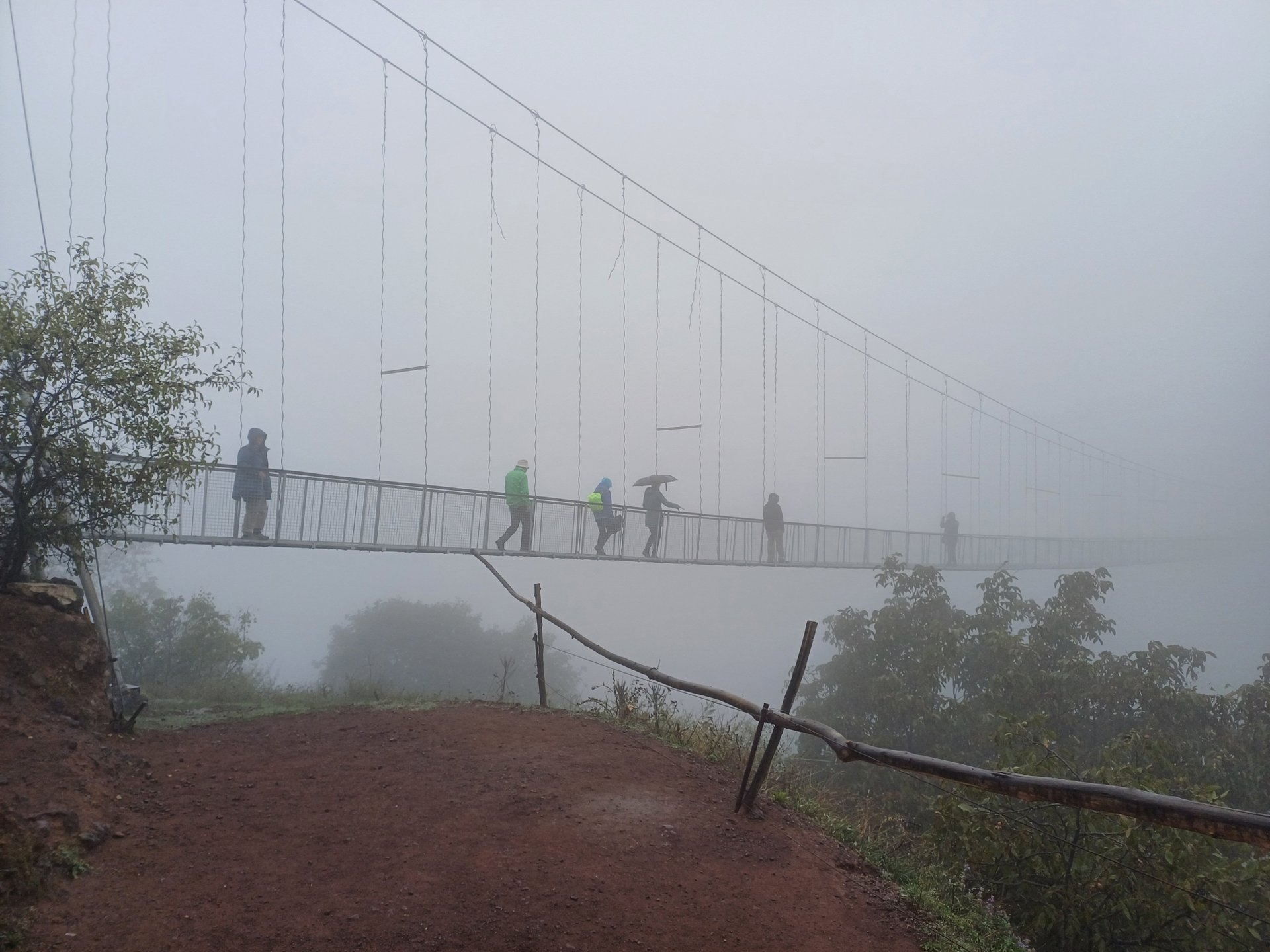 Der Tag beginnt mystisch – dichter Nebel liegt über Goris. Wir fahren nach Khndzoresk, wo einst Menschen in Höhlen lebten, die in den Sandstein gegraben wurden. Bis in die 1970er Jahre war der Ort bewohnt. Wir überqueren eine wackelige Hängebrücke – Abenteuerfeeling inklusive.