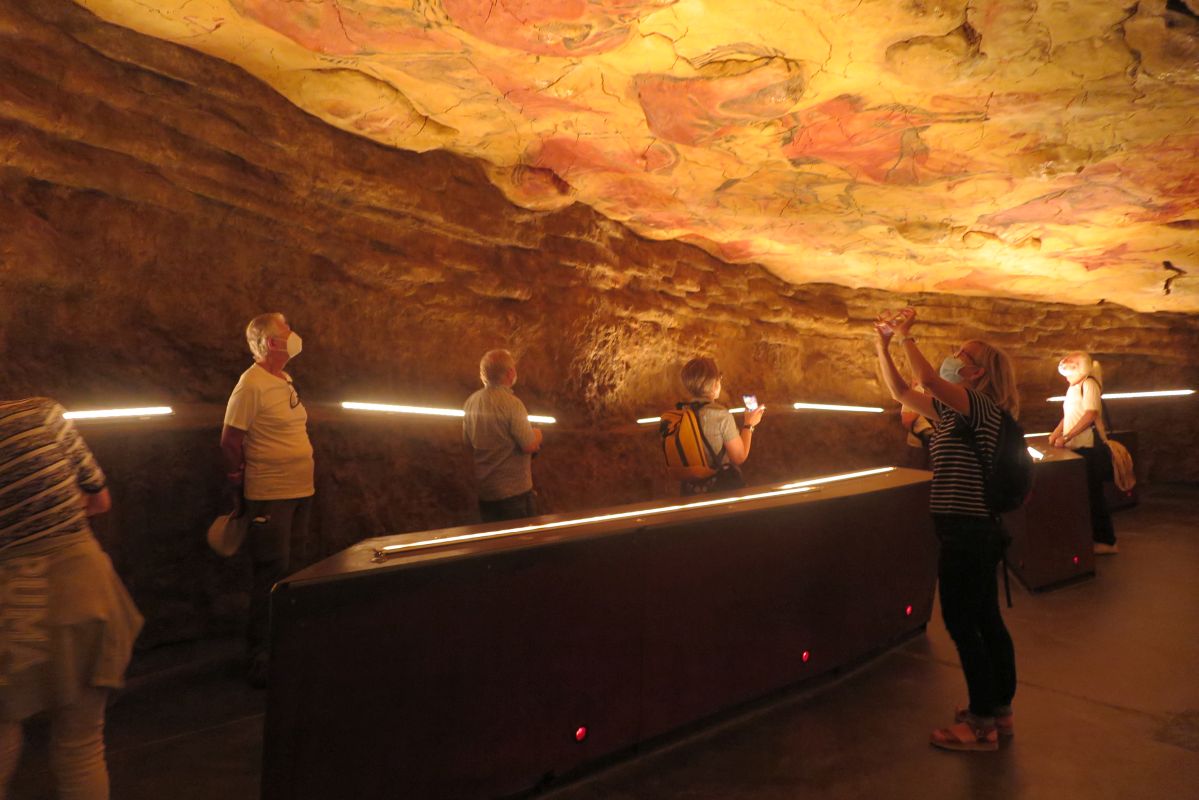 Nach dem eindrücklichen Vortag brechen wir ins nicht weit entfernte Santillana del Mar auf. Hier erwarten uns die Kopie der weltberühmten Höhle Altamira und das dazugehörige Museum. Zunächst lauschen wir aber den spannenden Schilderungen unseres Reiseleiters Ingmar Braun über die Entdeckung der Höhle. Nachdem die Höhle 1868 von einem Jäger entdeckt wurde, beschliesst Don Marcelino Sanz de Sautuola 1879 in der Höhle nach möglichen Funden aus der Altsteinzeit zu graben. Er entdeckt nebst unterschiedlichen Werkzeugen aus Stein und Geweih auch mobile Kunstwerke. An einem Tag nimmt er seine achtjährige Tochter Maria mit. Während er im Boden altsteinzeitliche Funde sucht, erblickt seine Tochter die an der Decke gemalten Bisons. Ihr Vater ist davon überzeugt, dass diese Malereien auch aus der Altsteinzeit sind. Jedoch wird dies von den Wissenschaftlern angezweifelt und abgelehnt. Erst nach seinem Tod und der Entdeckung weiterer Höhlen mit Bildern in Spanien und Frankreich wird der einzigartige Fund anerkannt.