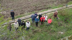 unsere archäologische Studienreisegruppe 2023 mit Dr. Zeidi und Dr. Braun vor dem Vogelherd auf der Schwaebischen Alb