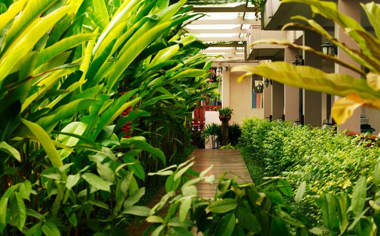 Ausstattung: Der „Seafront Wing" befindet sich direkt am Strand, dahinter die beiden „Courtyard Wings". In Strandnähe gibt es das Buffet- bzw. à la carte-Restaurant (saisonal geöffnet) mit thailändischer und internationaler Küche. Weiters gehören eine Open-Air-Lobby und ein Pool mit separatem Kinderbecken zum „Seafront Wing". Im 2. Teil der Anlage, welcher sich in ca. 400 m Entfernung befindet und nur durch eine wenig befahrene Straße vom Strand getrennt ist, liegen die Deluxe Pool View und Deluxe Pool Access Zimmer, das Hauptrestaurant, ein Minimarkt, ein weiterer Pool mit integriertem Kinderbecken und eine offene Rezeption. Im hinteren Teil der Anlage, welcher abermals durch eine wenig befahrene Straße vom zweiten Teil getrennt liegt, befinden sich die Deluxe Bungalows sowie ein weiterer Pool mit Pool-Bar (saisonal geöffnet). WiFi-Internetzugang ist im gesamten Resort ohne Aufpreis verfügbar.