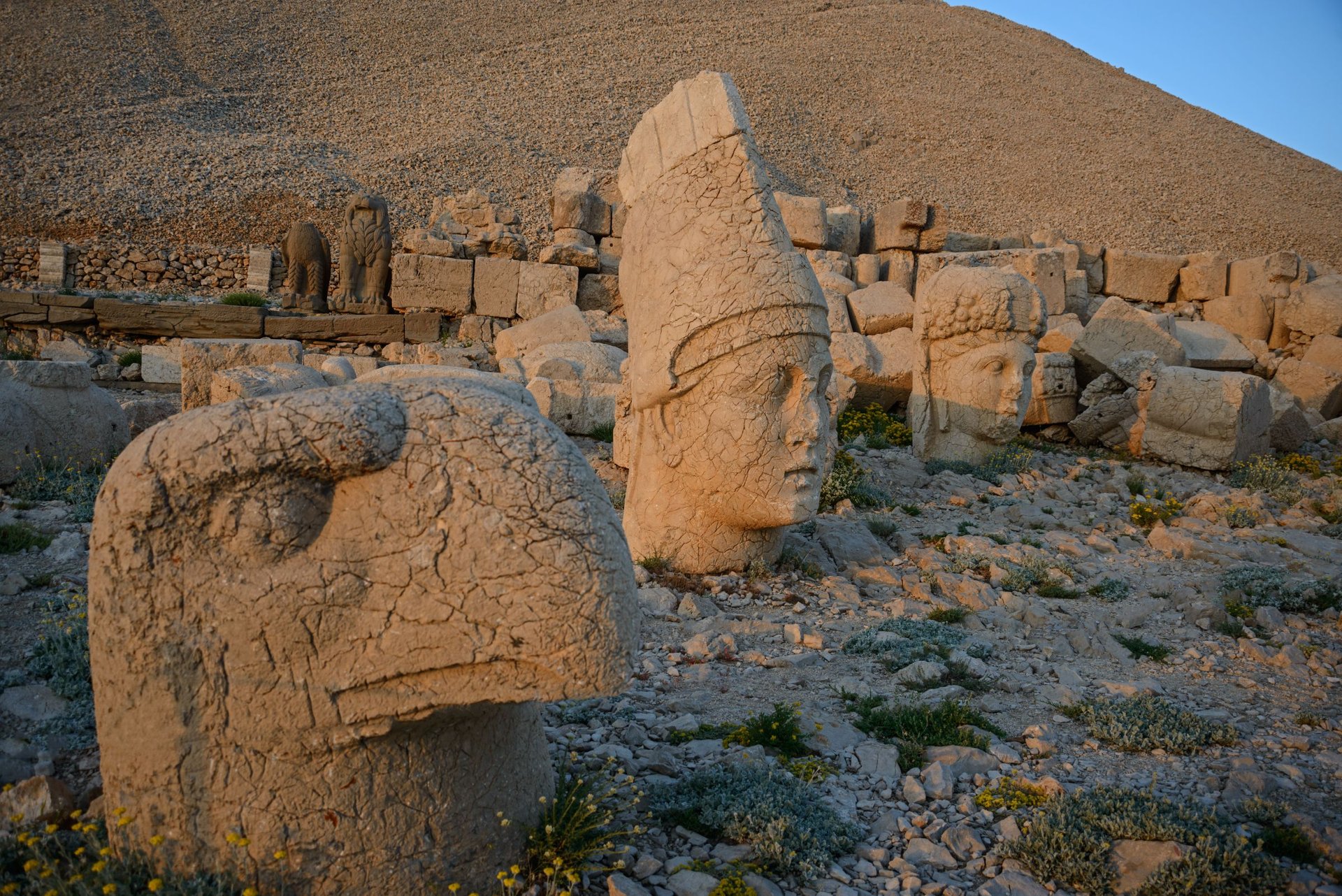 In der historischen Landschaft der Kommagene erwartete uns tags darauf ein ungewöhnliches Naturschauspiel. Die gigantischen Köpfe und Statuenfragmente des „Hierothesions“ von König Antiochos I. (69 – 36 v. Chr.) auf dem Gipfelplateau des Nemrud Dag in rund 2100 m Höhe präsentierten sich nicht wie gewohnt in strahlendem Sonnenlicht, sondern mystisch von Wolkenfetzen verhüllt.