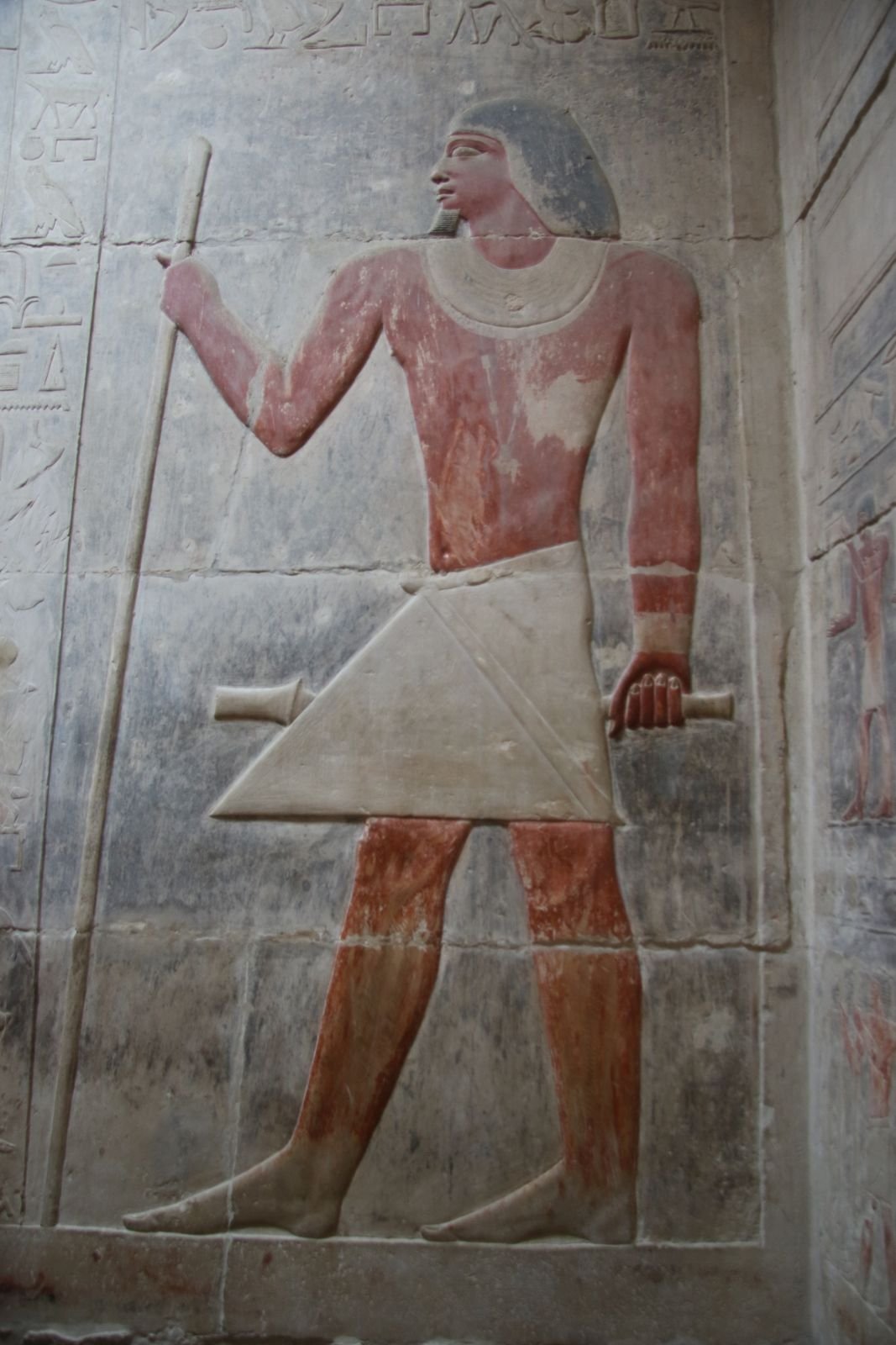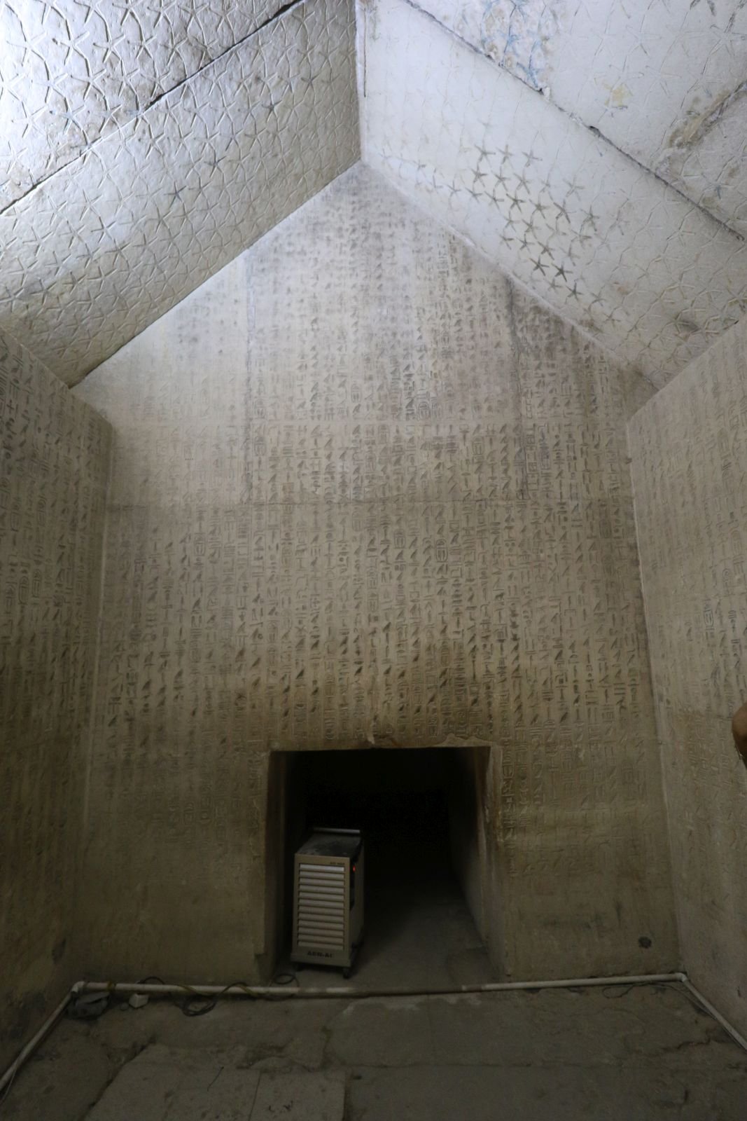 Unweit davon weist die Unas-Pyramide die älteste mit Texten verzierte Grabkammer auf. Zuvor waren die königlichen Sargräume stets undekoriert. Im Gegensatz dazu waren die Grabwände der zeitgenössischen Beamtenschaft mit reichem Reliefschmuck verziert, wovon wir uns bei einem Besuch der Mastabagräber der Idut und von Kagemni und Mereruka selbst überzeugen konnten.