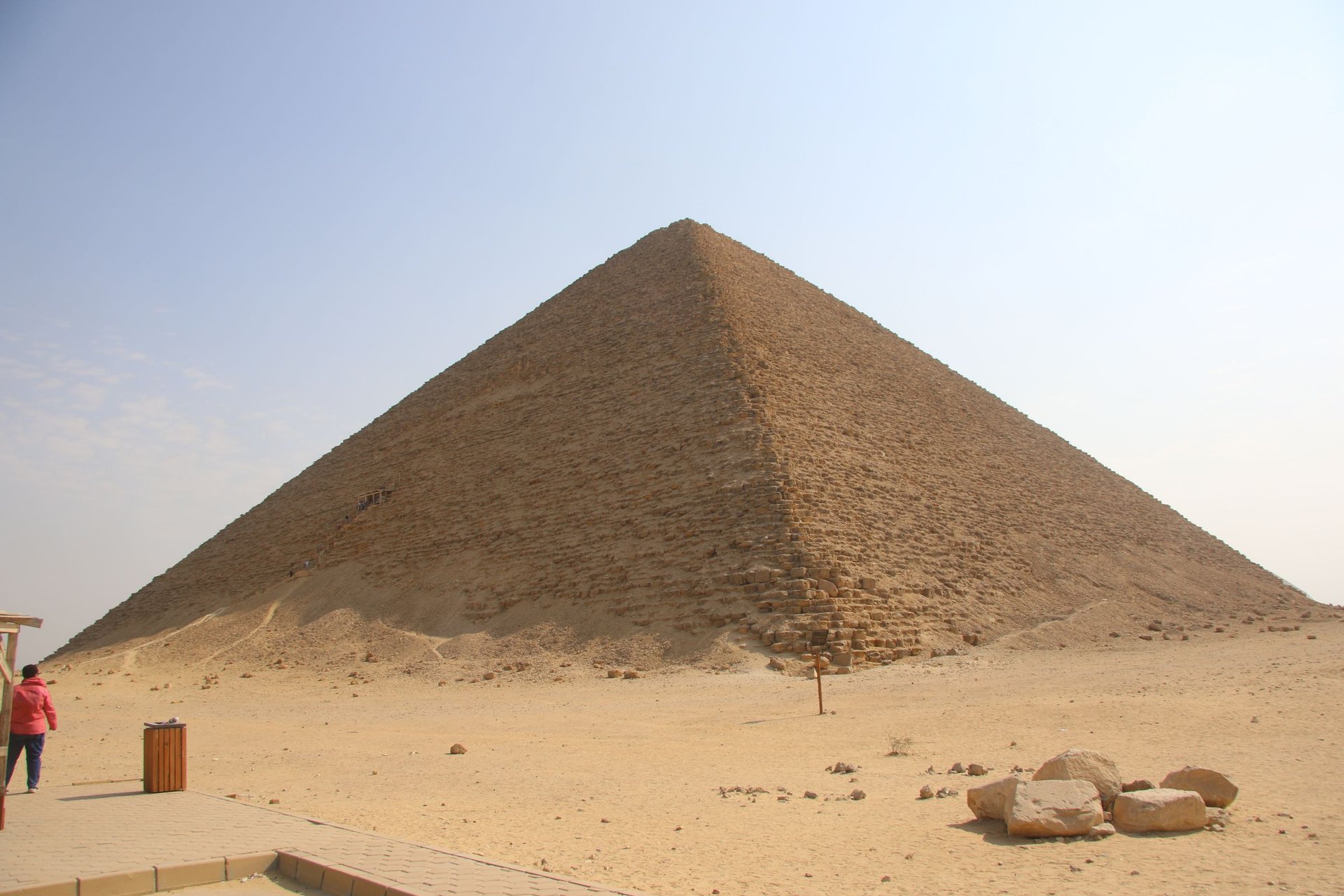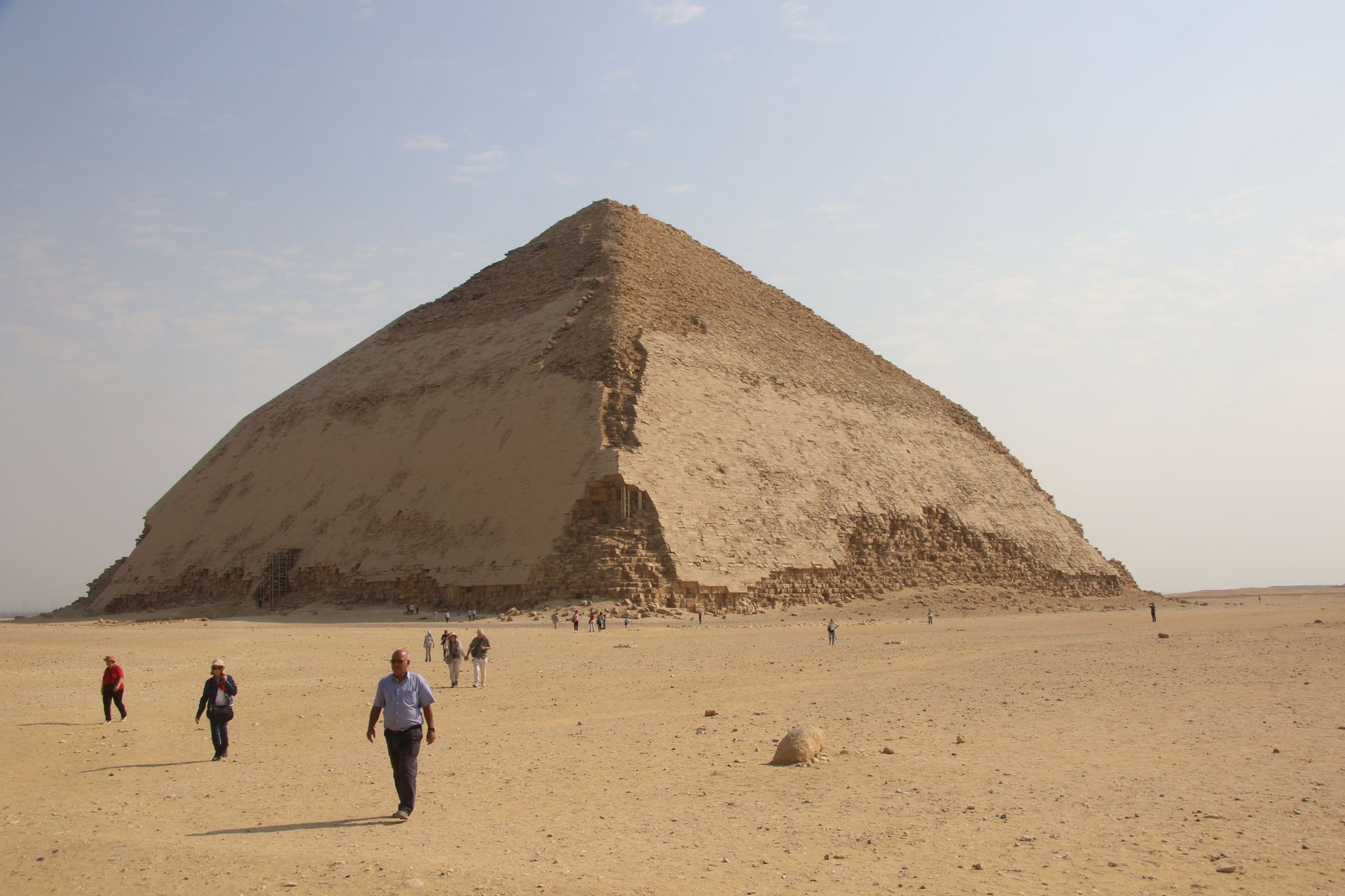 Danach ging es weiter nach Dahschur zu den beiden Pyramiden des Königs Snofru, Vater des Cheops. Die nach ihrem Aussehen als „Rote Pyramide“ und als „Knickpyramide“ bezeichneten Grabmäler sind (gemeinsam mit der Pyramide von Meidum, der dritten Pyramide dieses Herrschers) die unmittelbaren Vorläufer der Cheops-Pyramide.