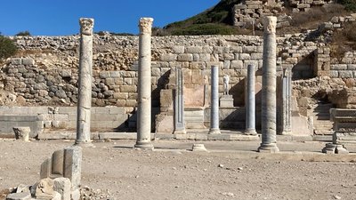 Kaunos ist die besterhaltene der historischen Stätten auf dieser Reise und beeindruckt durch große, weithin sichtbare römische Thermen, ein in den Burghang eingetieftes griechisches Theater sowie durch zahlreiche Kirchen und Tempelgrundrisse. Über die antike Straße mit ihrem weitgehend noch erhaltenen Pflaster und flankiert von alten Gebäuderesten steigen wir von der Agora hinab zum malerisch an der Einmündung des Flusses Dalyan gelegenen antiken Hafenbecken mit seinen Relikten.