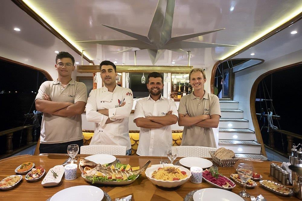Der Kapitän des Gulets hat uns mit seiner erfahrenen Mannschaft aufs Beste verwoehnt und sein Koch uns immer leckeres Essen aus seiner kleinen Kombüse serviert. Dementsprechend fiel uns der Abschied von unserem schwimmenden Zuhause, der zuvorkommenden Mannschaft und der eingeschworenen Gemeinschaft dann doch schwer!