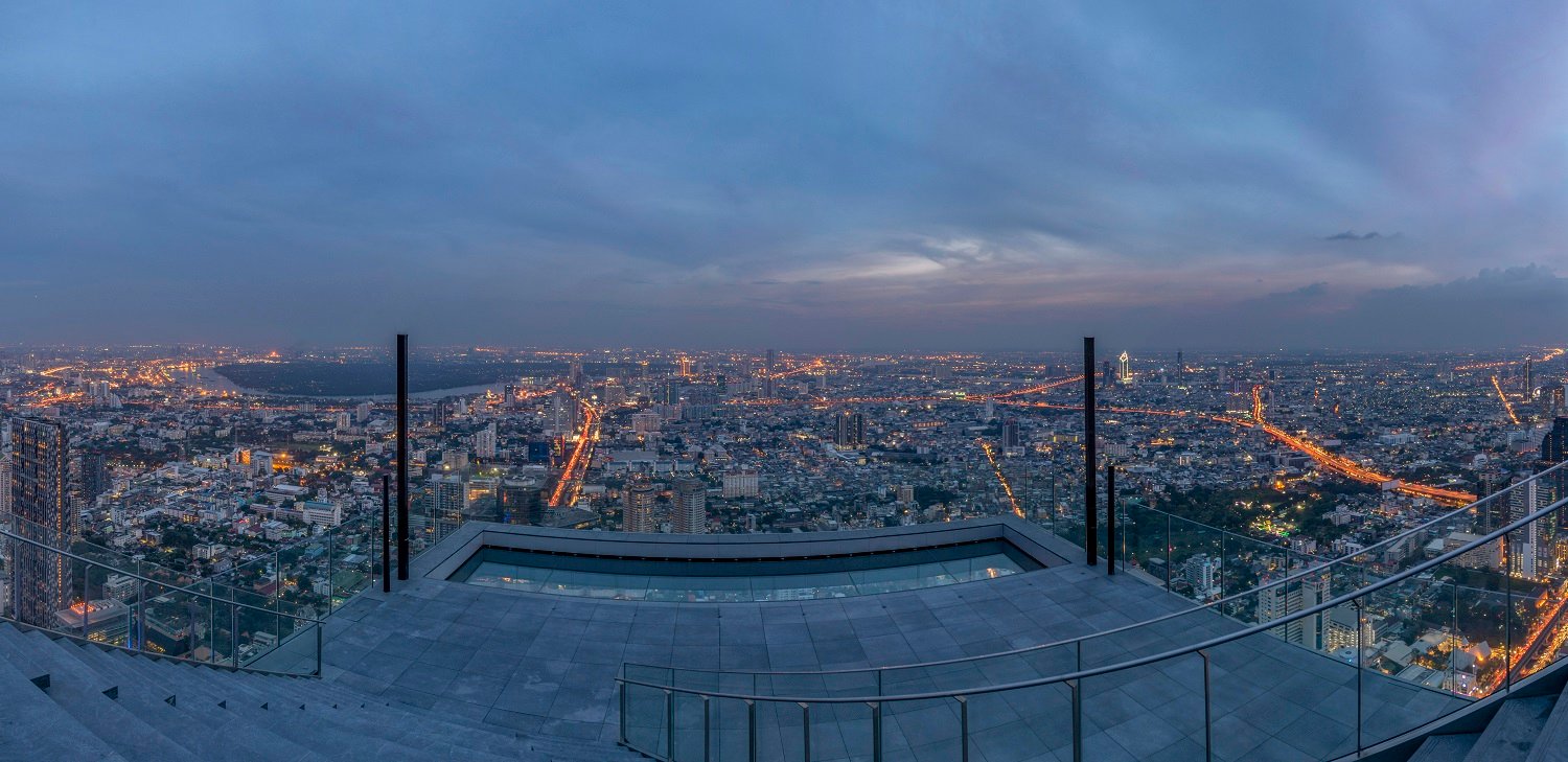 Nach der Fahrt mit dem Panoramaaufzug erreichen Sie die 78. Etage. In 310 Meter Höhe haben Sie im Freien einen 360-Grad-Panoramablick auf die Sehenswürdigkeiten Bangkoks. In der Bar auf der Dachterrasse können Sie Getränke und Snacks erwerben.
