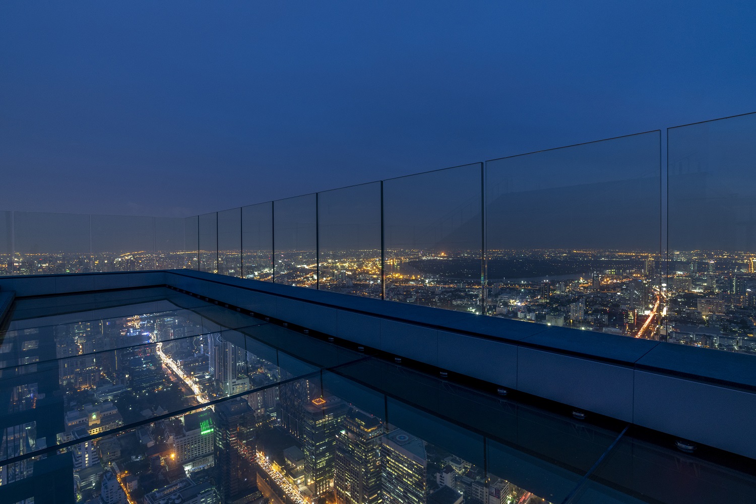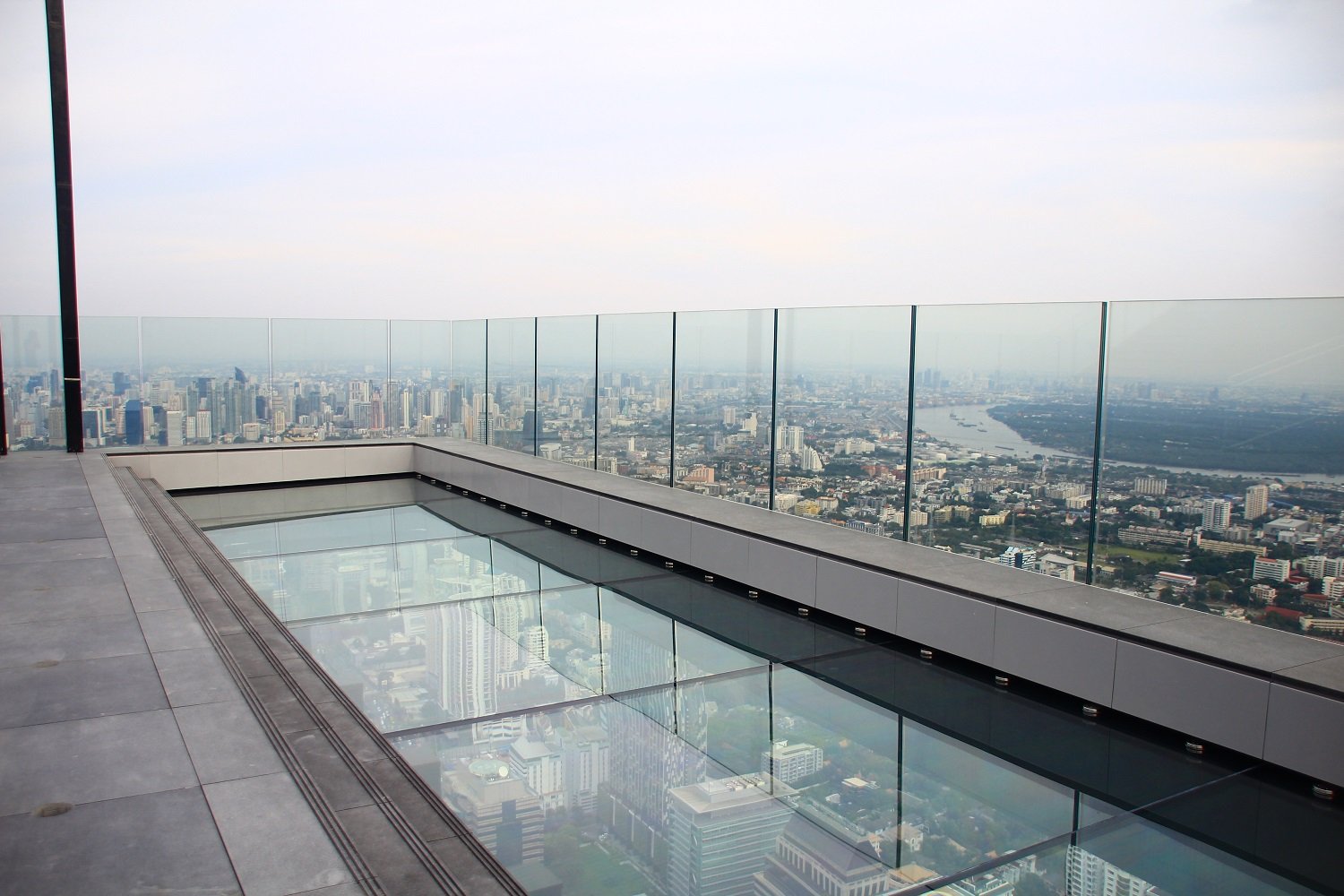 Hier wagen sich Mutige auf eine der größten Glasplattformen der Welt - Bangkok aus der Vogelperspektive! Es gibt einen offiziellen Punkt, wo Sie das Abenteuer fotographieren können. Lose Gegenstände (auch Mobiltelephone) sind auf der Plattform selbst nicht erlaubt. Schuhe müssen mit einem Einweg-Schuhüberzug abgedeckt werden.