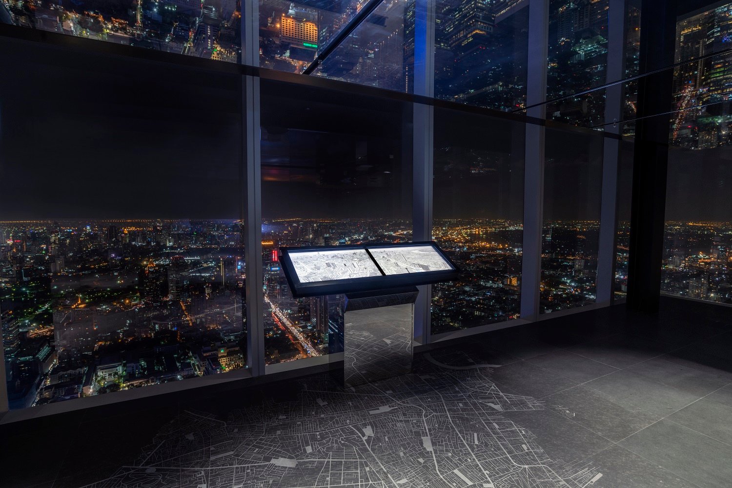Im 74. Stock haben Sie einen von innen einen 360-Grad-Rundumblick auf Bangkok. Durch interaktive Bildschirme erfahren Sie mehr über die Wahrzeichen der Stadt. Wenn Sie einen Rooftop Pass erworben haben, geht es mit der Rolltreppe ein Stockwerk höher und dann mit dem Glasaufzug mit Panoramablick auf das Sky Deck.