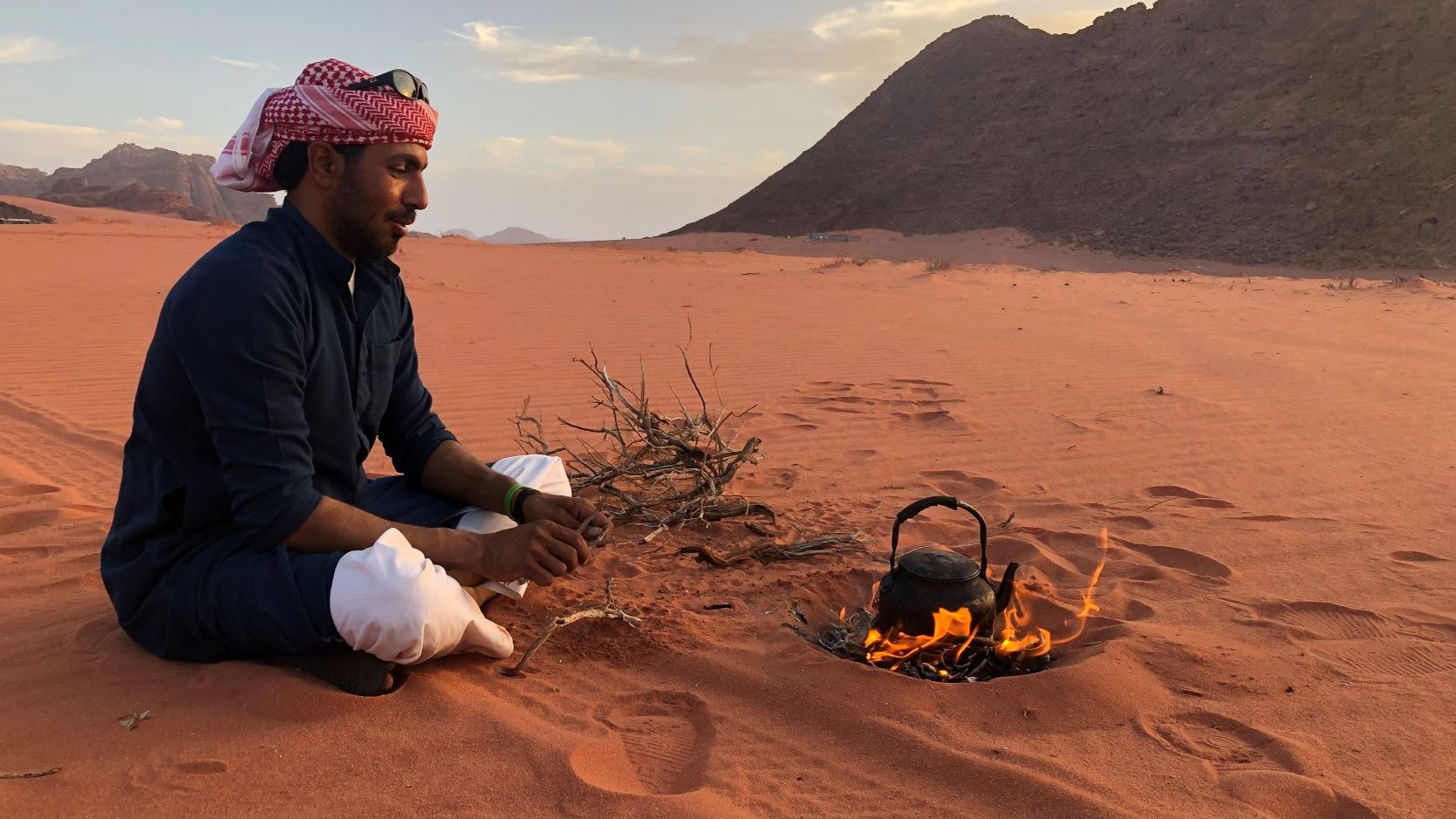 Es ist nicht unsere erster Besuch in einer Wüste, doch tatsächlich ist dies immer ein besonderes Erlebnis. Und Wadi Rum ist auf jeden Fall zu Recht die berühmteste Wüste Jordaniens! Die unglaublichen Felsformationen dienten in Filmen wie Lawrence von Arabien, Indiana Jones und der Marsianer als Kulisse. Riesige rotbraune Felsen ragen aus der unendlichen atemberaubenden Wüstenlandschaft und weder Filme noch Fotos können die einzigartige Atmosphäre vor Ort tatsächlich wiedergeben. Mit dem Jeep erkunden wir Felsbögen, bewundern natürliche Formationen und entdecken uralte beeindruckende Zeichnungen in Canyons. Unser Fahrer kocht zum Sonnenuntergang mitten im Nirgendwo Tee für uns - einfach unvergesslich!