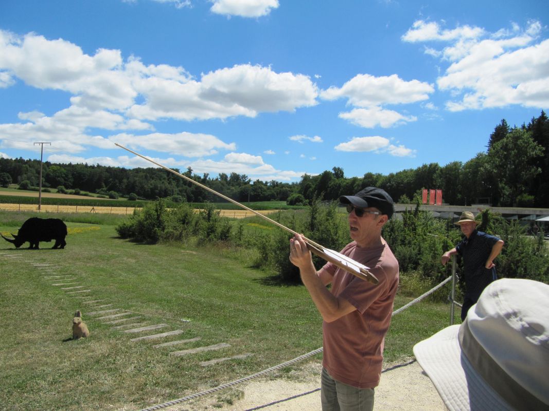 Den Vormittag verbringen wir im Archäopark, erkunden den Skulpturenweg und versuchen uns im Speerwerfen und dem Werfen mit Hilfe der Speerschleuder. Der Höhepunkt ist natürlich der Besuch der Fundstelle Vogelherd. Gustav Riek fand bei der Grabung 1931 in den aurignacienzeitlichen Schichten mehrere aus Mammutelfenbein angefertigte Tierfigurinen, die nun weltberühmt sind. Eine wohlverdiente Mittagspause legen wir im nahegelegenen Ausflugsgasthof Schlössle ein und starten dann gestärkt in den Nachmittag.