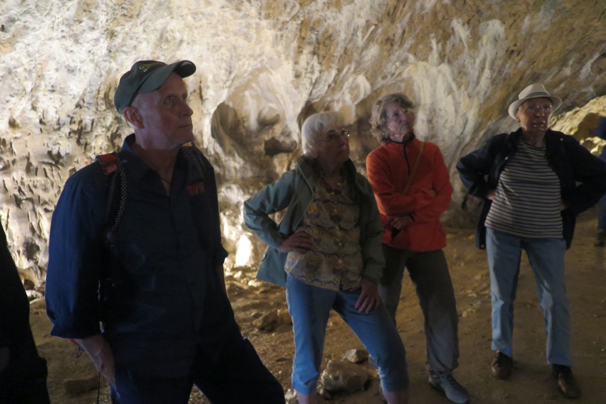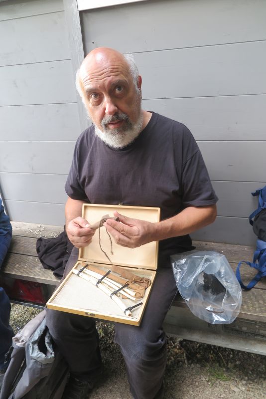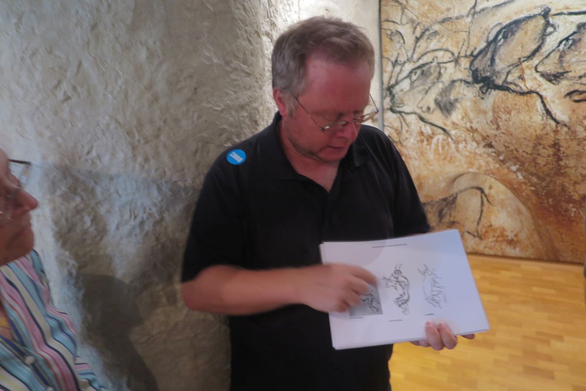 Eine unserer Reiseteilnehmerinnen an der letzten Frankreichreise, die in der Nähe wohnt, hat sich am heutigen Tag der Gruppe angeschlossen und spielt uns Flötenklänge vor, die auf Nachbauten der hier gefundenen Instrumente aus der Eiszeit gespielt werden. Nochmals Danke an Rosemarie für diese wunderbare Idee, die wir gerne auch in den nächsten Reisen so einbauen werden! Johannes Wiedmann hat selbst Nachbauten der Flöten für uns mitgebracht und erklärt uns die Funde und Spielweise dieser ältesten bekannten Musikinstrumente der Menschheit.