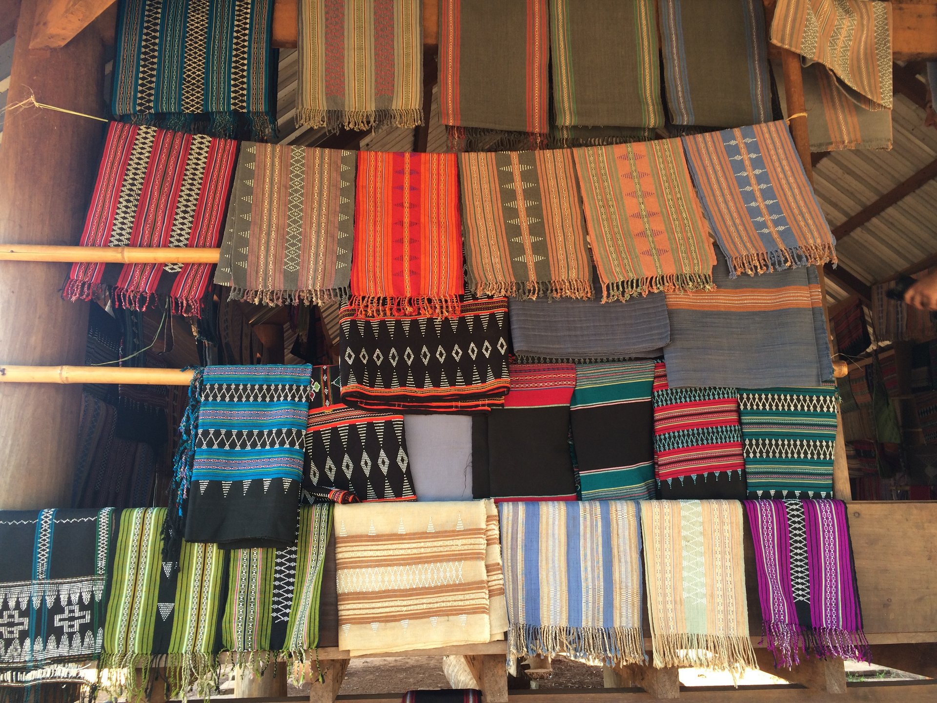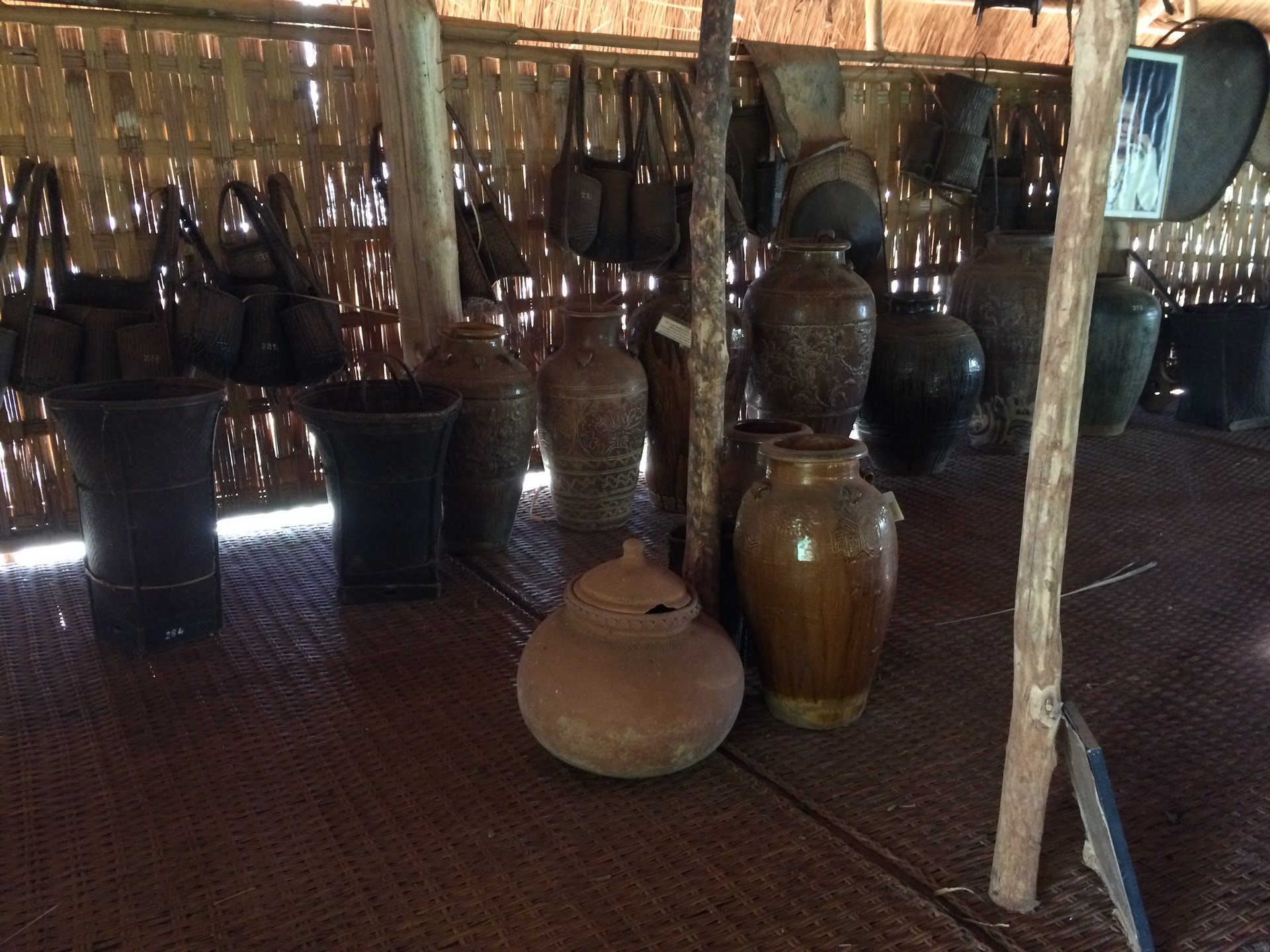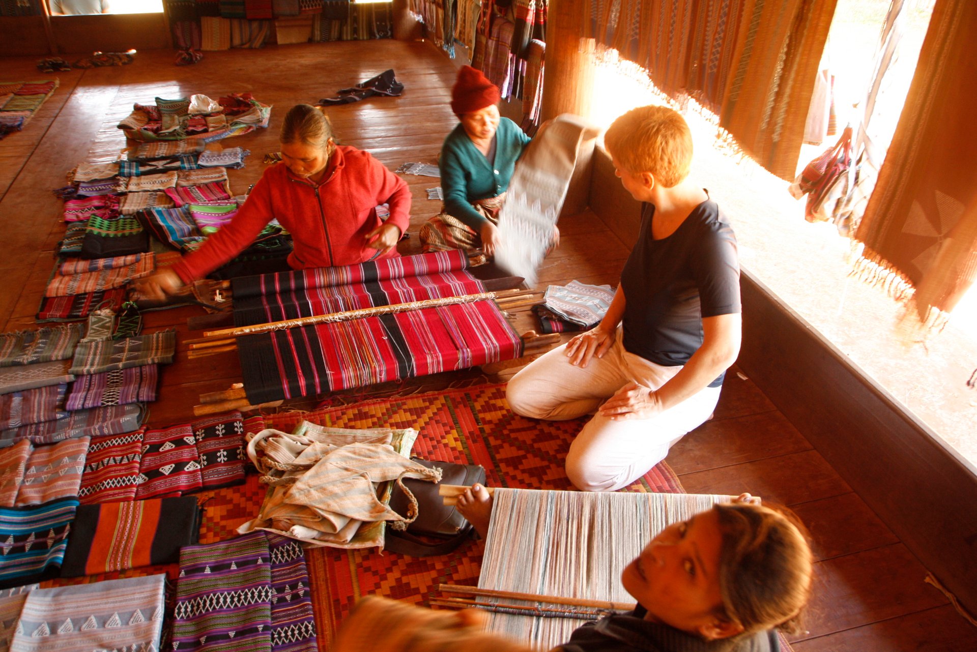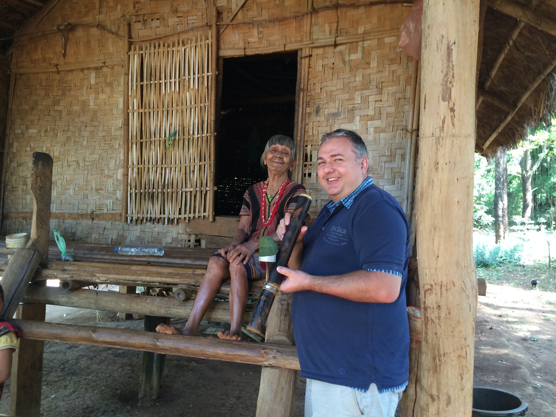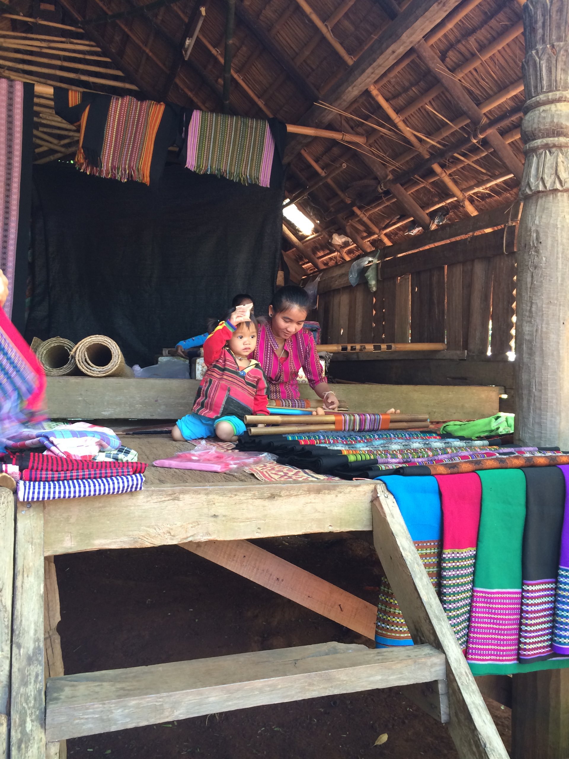 Nach dem Frühstück statten wir mehrere kleinen Dörfern einen Besuch ab, in denen ethnische Minderheiten leben. Hier leben die Menschen tatsächlich noch abgeschieden, teilweise mit animistischem Glauben. In dem Dorf der Alak-Minderheit werden bis auf den heutigen Tag Wasserbüffel geopfert, wenn im Dorf ein Unglück geschehen ist. Nach einem Stopp beim Tad Lo Wasserfall geht es zu einem Dorf, in dem die Gnea-Minderheit lebt, die ebenfalls Büffel opfert. Wieder ein Dorf weiter, bei der Katou-Minderheit, herrscht noch Polygamie. Wir bewundern Webarbeiten, spielen Fussball mit den Kindern und staunen einfach über die unterschiedliche Kultur. Unser Besuch des Boulaven Plateaus wird mit einem Abstecher in das Pha Suam Ethnik Museum abgerundet, in den dem die verschiedenen Hausformen der zahlreichen laotischen Minderheiten sowie deren unterschiedlichste Handwerksgegenstände ausgestellt sind. Wir sind froh, dass uns Mr. Thamanoune immer noch begleitet und die verschiedenen Bräuche erklärt.