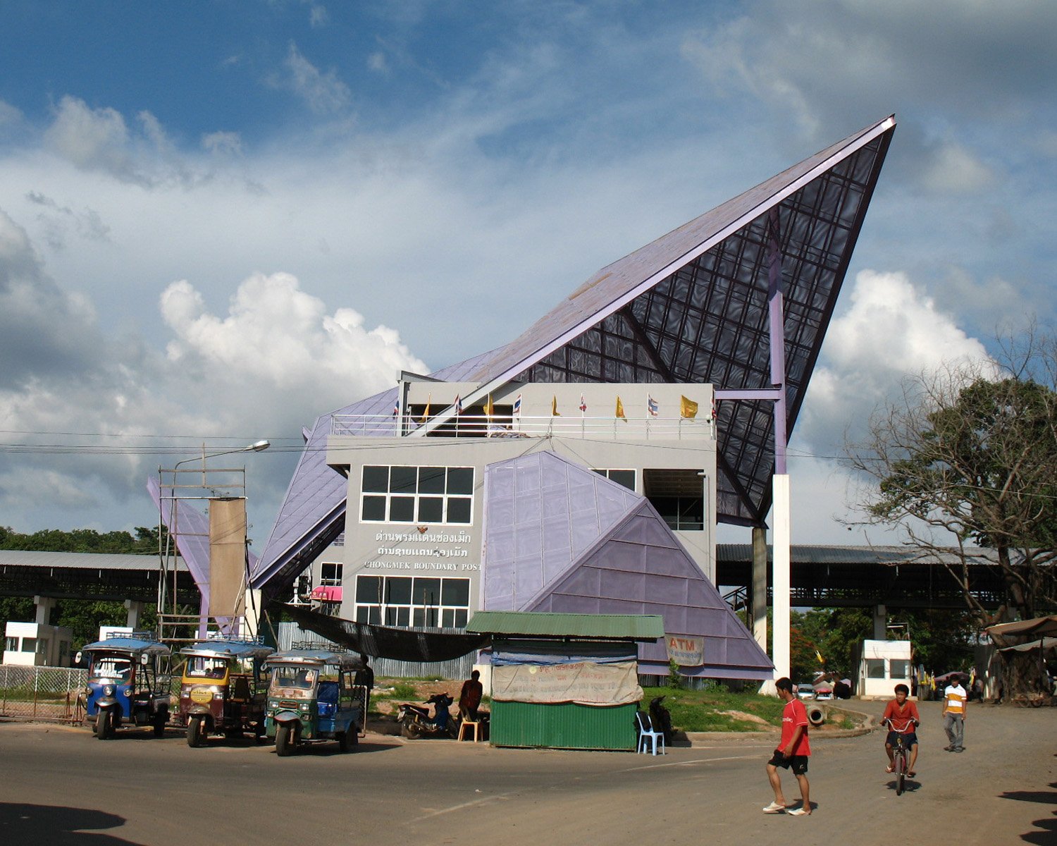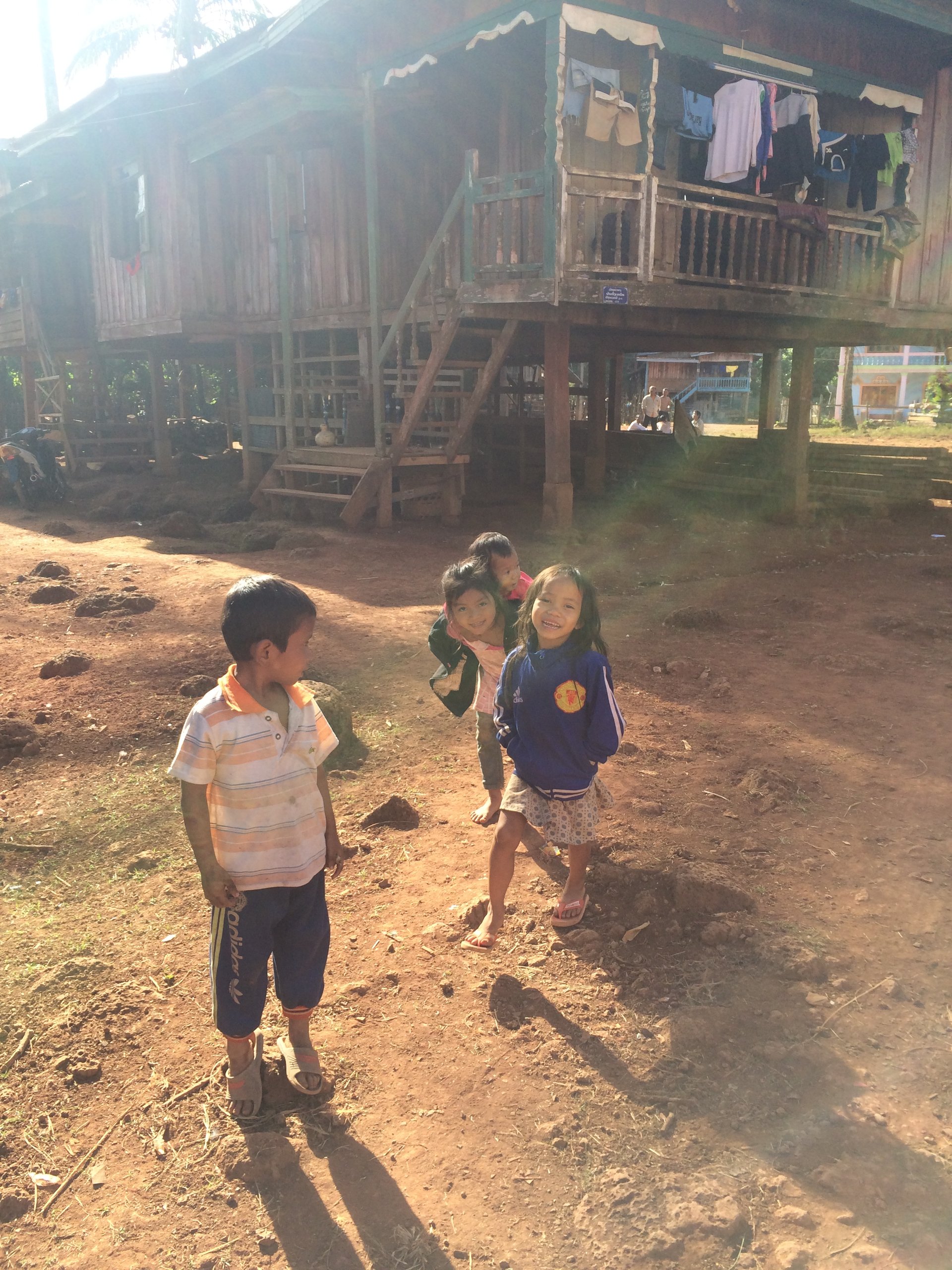 Der nächste Tag beginnt mit pünktlicher Abholung und Transfer zur Grenze. Hier in Chong Mek wird das Auto gewechselt und unser thailändischer Fahrer und Guide begleitet uns zu Fuß auf die laotische Seite. Dort übernimmt uns sein laotischer Kollege, der sich auch darum kümmert, dass das Gepäck wieder neu verstaut wird. Das Service ist also perfekt. Wir sind vorbereitet, pro Person 35,- USD in kleinen Scheinen und Foto haben wir zur Hand, aber der Personen Grenzverkehr ist beachtlich und so vergeht rund 1 Stunde bis wir auf der laotischen Seite unsere Visa und Pässe wieder haben. Egal, wir unterhalten uns inzwischen mit den anderen Wartenden und sehen den einheimischen Kindern beim Spielen zu. In Laos geht alles seinen gemütlichen Gang, hier haben wir noch nie jemand in Hektik erlebt.