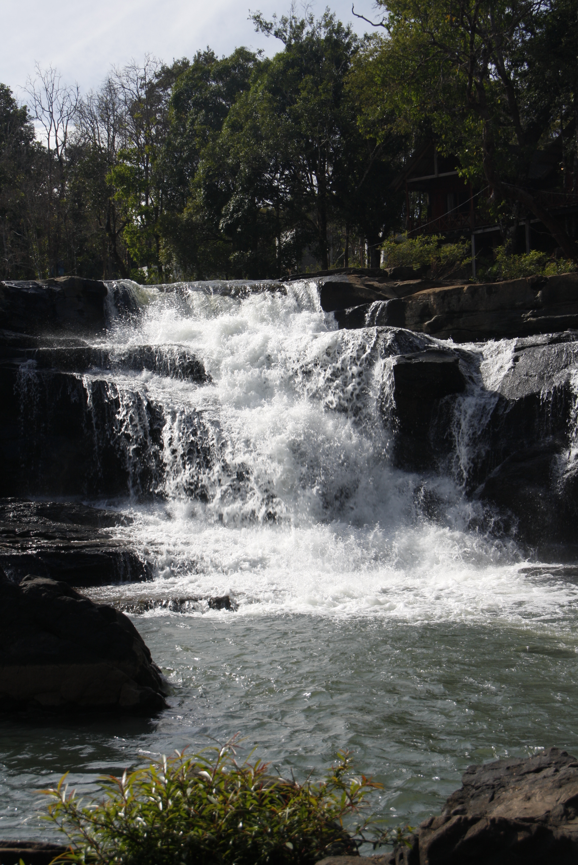 Wir sind, und das ist, wenn man die Infrastruktur mit Restaurants, Parkplatz und Souvenirshop sieht, überraschend, beinahe die einzigen Touristen. Vielleicht haben wir einfach einen günstigen Moment erwischt, vielleicht kommen die Tagesbesucher aus Pakse erst später. Anschließend fahren wir weiter, nach Norden, denn wir wollen heute zum Boulaven Plateau, bekannt für sein kühles Klima, die spektakulären Wasserfälle und zahlreichen Kaffeeplantagen.