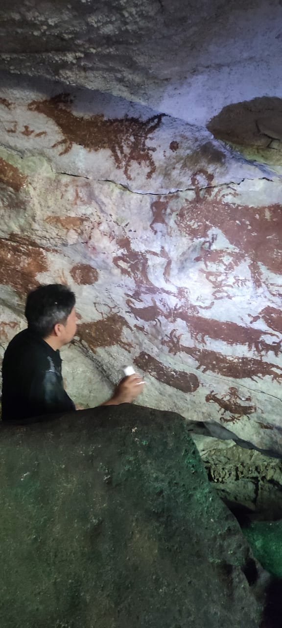 Ein Besuch bei der Felsbildkunst auf Sulawesi ist nicht vergleichbar mit einem Besuch steinzeitlicher Höhlenmalerei in Frankreich oder Nordspanien. Tatsächlich sind die Höhlen touristisch kaum erschlossen und wir waren Ende 2024 wieder selbst auf Sulawesi unterwegs, um uns persönlich ein Bild zu machen. Einzig in Leang Leang sind wir auf weitere Besucher gestoßen, ansonsten waren wir alleine bei den Darstellungen in den Höhlen. Wir haben uns angesehen, was bei unseren üblichen Sulawesireisen für alle machbar und zugänglich wäre und welche Besichtigungen wir bei einer Spezialtour für archäologisch besonders interessierte Reisende realisieren können. Vor Ort gab es zu der Zeit bereits die Information, dass noch älteren Felsbilder im Südosten untersucht werden und wir haben Muna in unsere spezielle archäologische Studienreise bereits inkludiert.