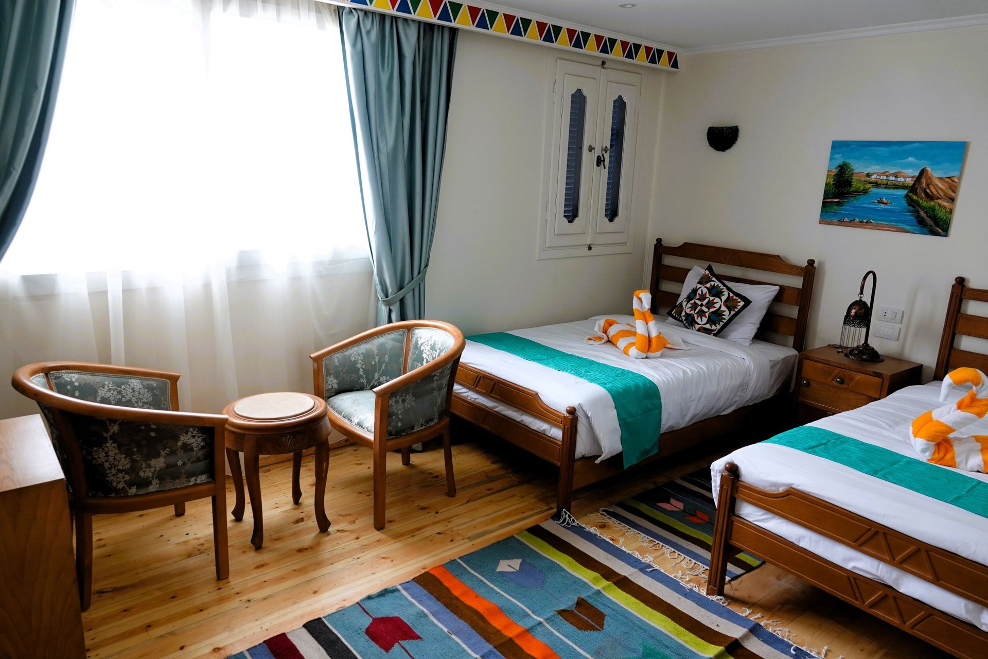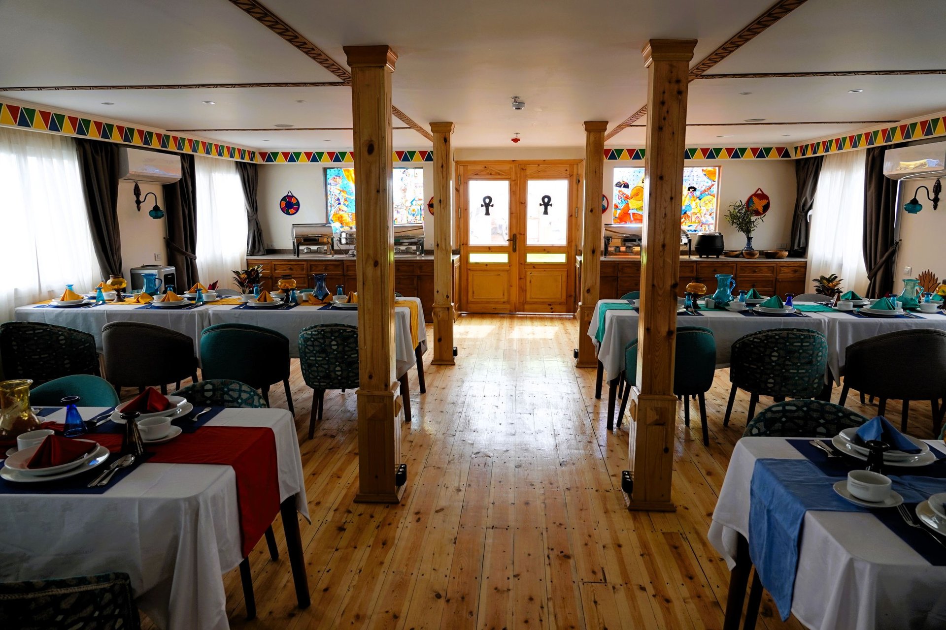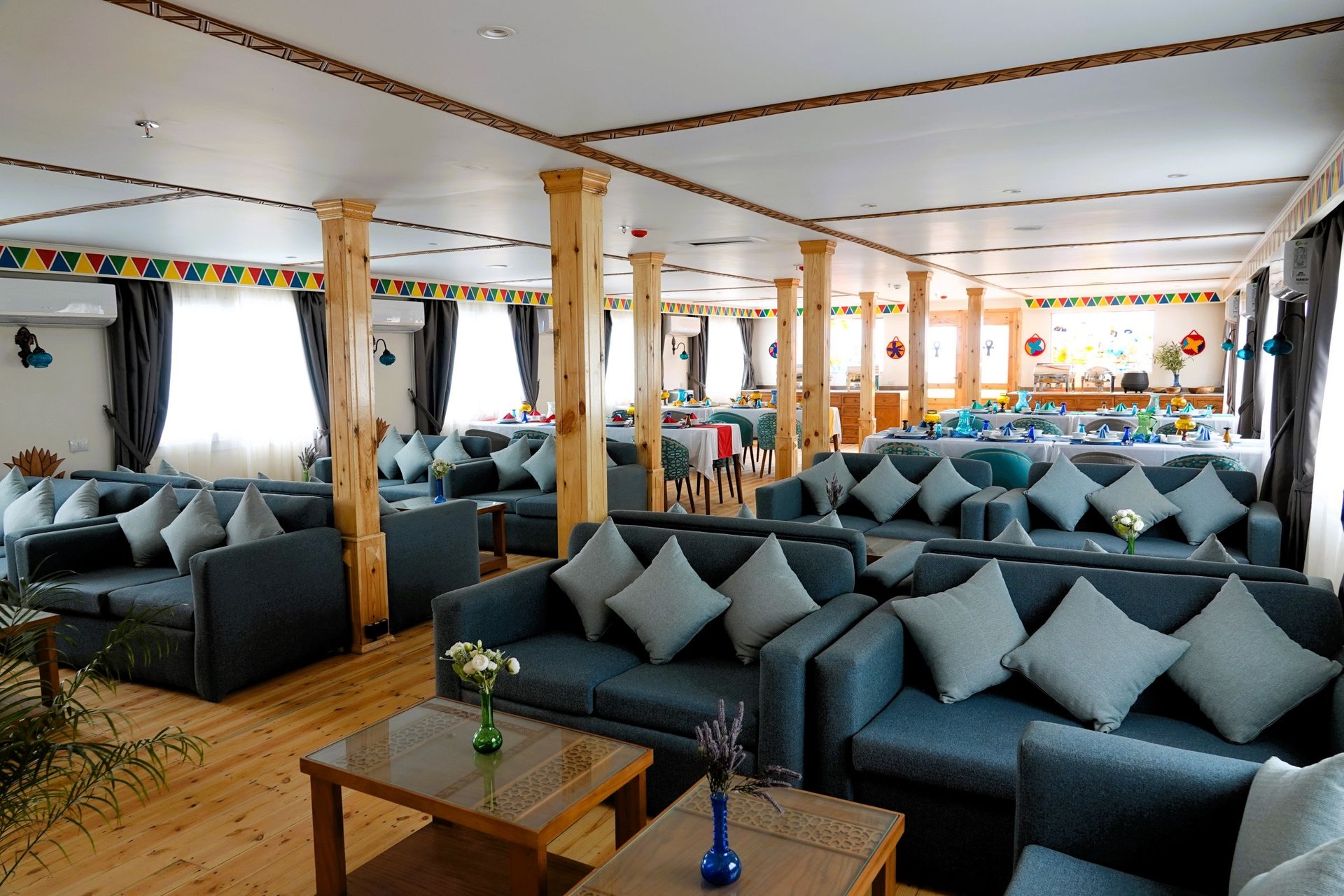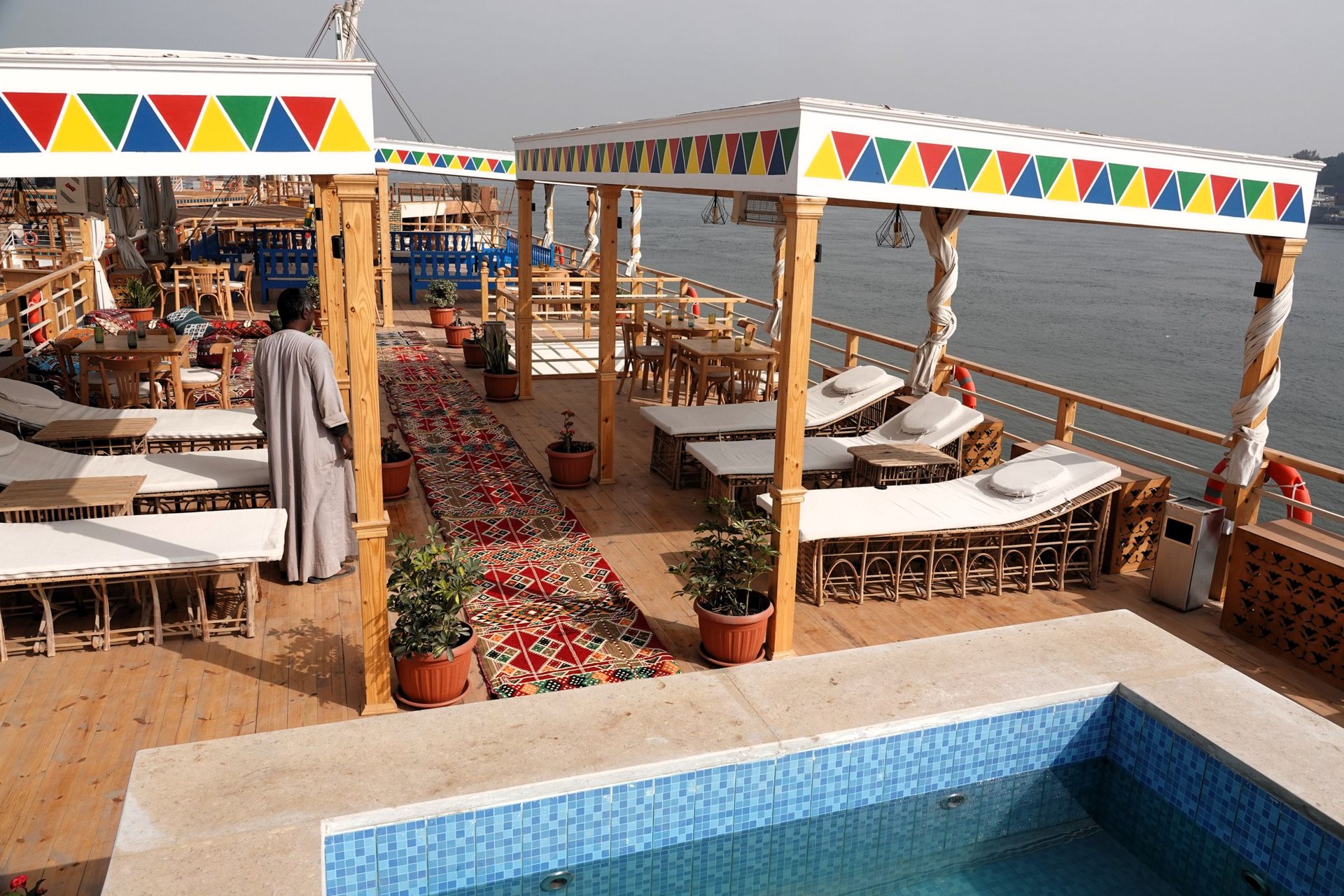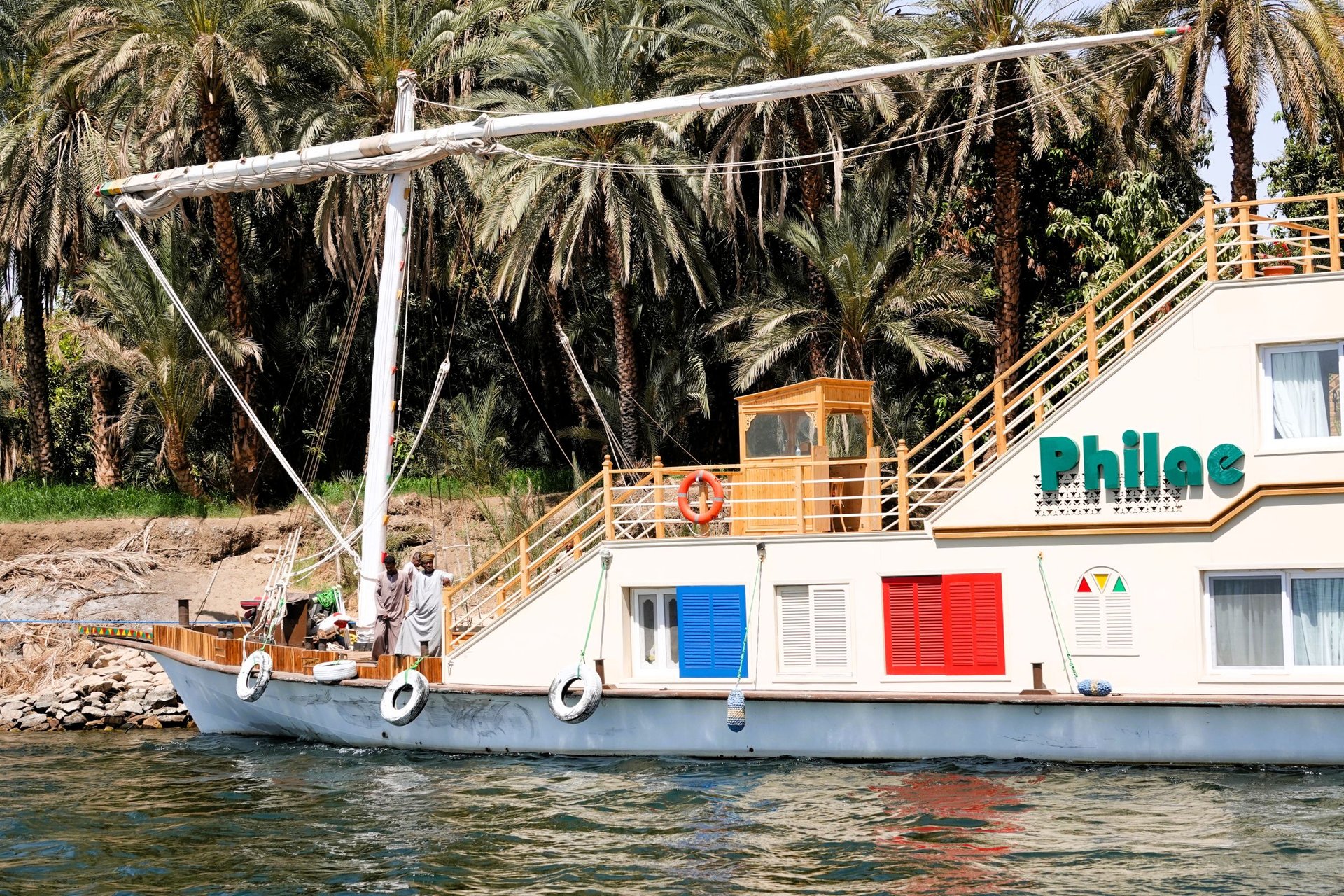 Zum Einsatz kommt entweder die S/v Philae (11 Außenkabinen / 4 Terrassenkabinen) oder das Schwesternschiff S/v Elefantine (8 Außenkabinen / 2 Terrassenkabinen). Beide Schiffe sind neu (erbaut 2024/2025), basieren jedoch auf dem Design einer originalen Dahabiya aus dem späten 18.Jhrdt. Eine erfahrene Crew (12 - 15 Mann) kümmert sich um unser Wohlergehen an Bord