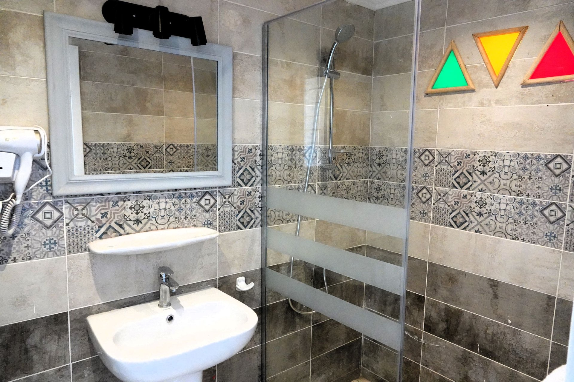 Privates Badezimmer (Dusche, Waschbecken, Toilette, Haartrockner, Toilettenartikel, Hand- und Badetücher)