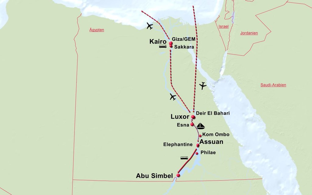 - Flug Economyclass nach Luxor/ab Kairo, Abreiseflughäfen: Wien, München, Frankfurt, Zürich (andere Abflugsorte auf Anfrage)