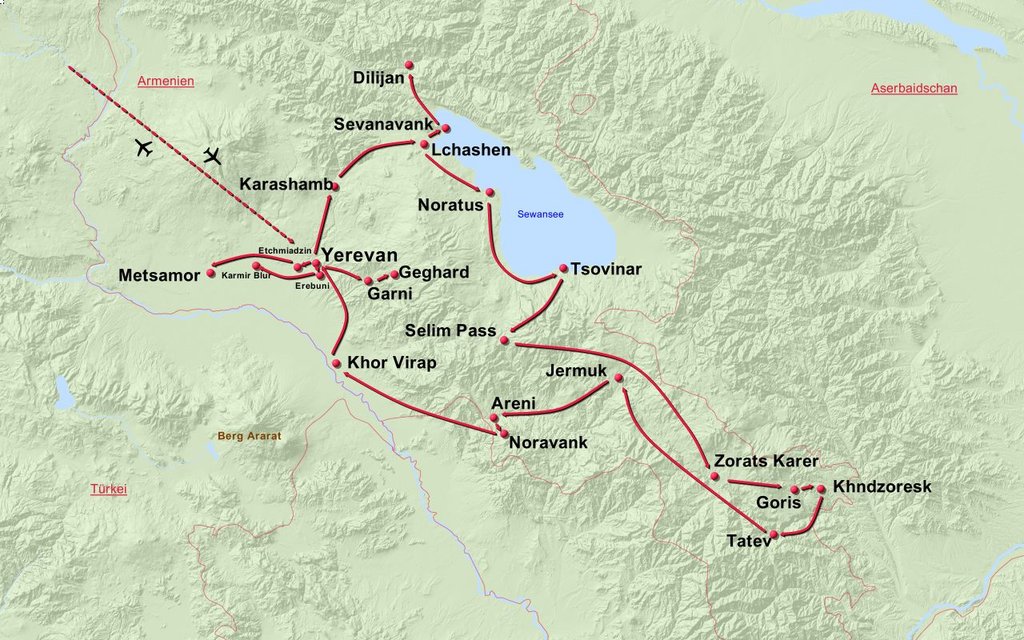 Yerewan Erebuni Historisches Museum Tsitkernakaberd Karmir Blur Karashamb Lchashen Sewanawank Sevansee Noratus Zorats Karer Goris Khndzoresk Tatev Jermuk Areni Noravank Tsovinar Selimpass Khor Virap Yerewan Matendaran Garni Geghard Etchmiadzin Metsamor Zvartnots Sardarapat Geghard Yerewan