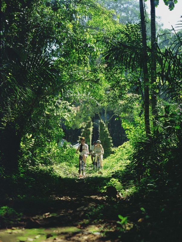 Downhill! Wir fahren zunächst zum Mount Batur und bewundern die atemberaubende Landschaft am See. Dann starten wir nach einer Sicherheitseinweisung mit unsere Radtour von Batur Village. Es geht vorwiegend abwärts durch Dörfer und Felder wieder Richtung Ubud. Zwischendurch halten wir immer wieder an, um Kaffee zu verkosten, einen Tempel zu besuchen oder das Dorfleben und die Arbeit auf den Reisfeldern zu beobachten. Die Guides kommen aus der Region und ermöglichen neben dem sportlichen Spaß auch einen Einblick in die Kultur und das Leben der Balinesen. Nach einem gemeinsamen Mittagessen in Ubud geht es dann wieder zurück ins Hotel.