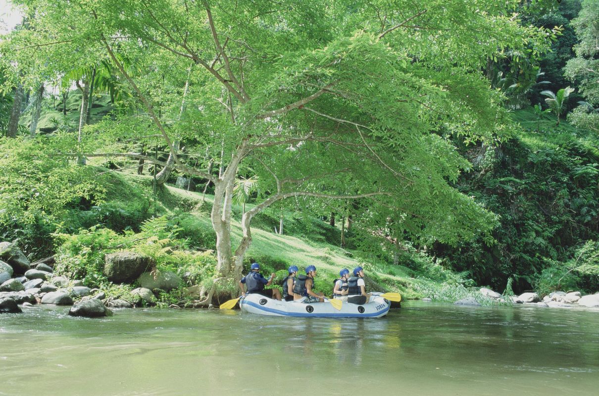 Wir fahren von Südbali ins Herz der Insel und kommen am Ayung River an. Hier warten 13 Flusskilometer mit 25 Stromschnellen, kleine Wasserfälle, farnüberwachsene Schluchten, versteckte Höhlen, enge Täler und unterschiedlich schnell fließendes Wasser auf uns. Unberührter Regenwald begleitet uns und während wir im Schlauchboot flußabwärts paddeln zieht die abwechslungsreiche Landschaft vorbei. Unsere Kameras und Mobiltelefone sind sicher in wasserdichten Taschen verstaut und am Ende der Strecke wartet ein stärkendes Mittagsbuffet im Restaurant am Ufer des Ayung auf uns. Es gibt Duschmöglichkeiten am Gelände und nach der Ankunft im Hotel bleibt noch der restliche Nachmittag für private Aktiviäten zur Verfügung.