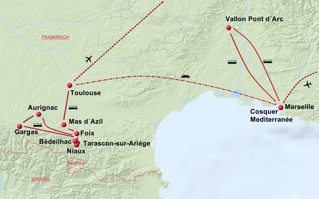 Chauvet, Cosquer und Bilderhöhlen der östlichen Pyrenäen
