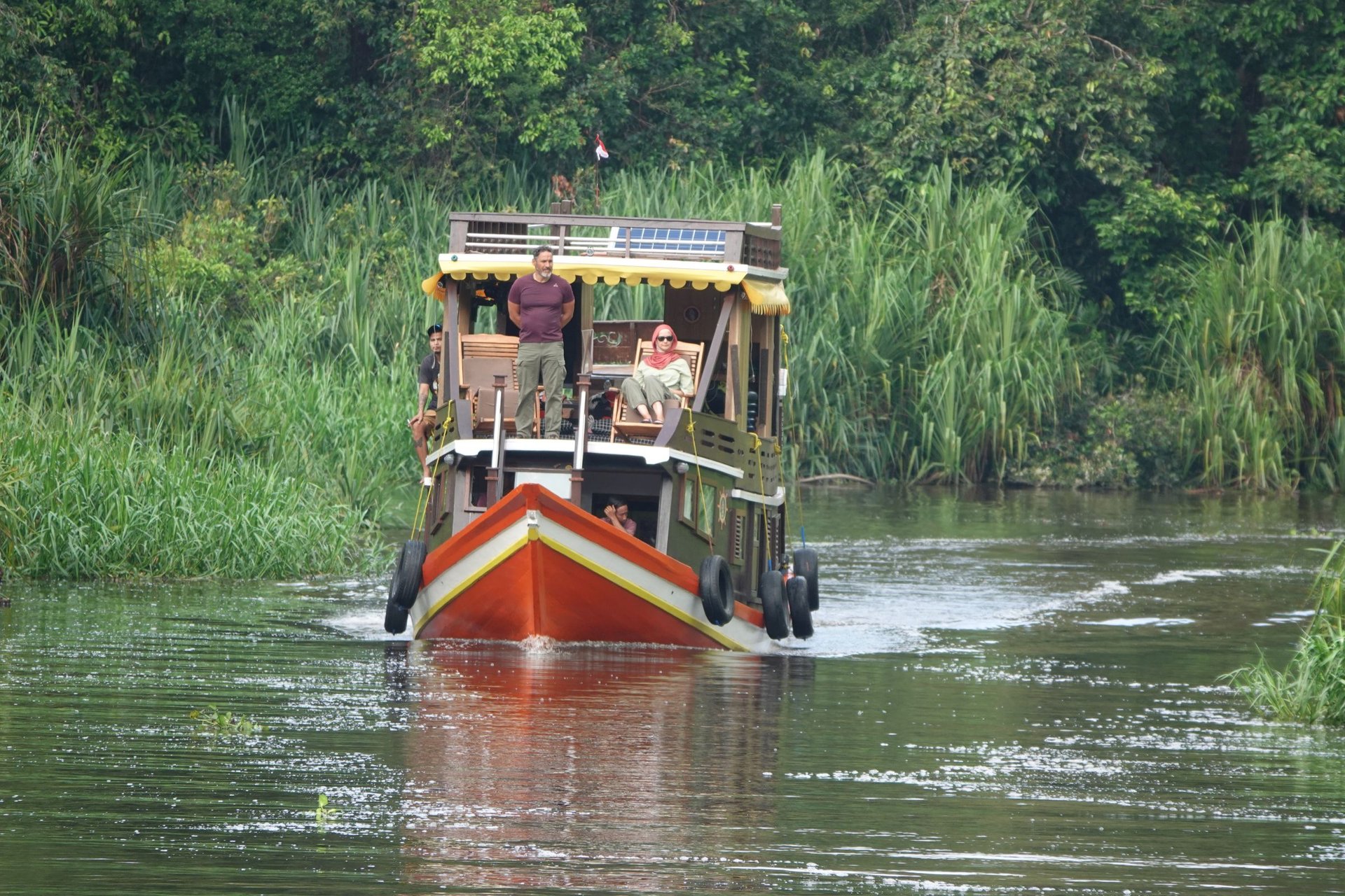 Die Crew war unglaublich herzlich und aufmerksam. Sie bestand aus einem Kapitän mit Gehilfen, einem Koch und einem englischsprachigen Guide – alle stammen aus dem kleinen Ort Kumai. Die Mahlzeiten an Bord waren köstlich, abwechslungsreich und immer frisch zubereitet. Auch Vegetarier finden hier immer eine Option!