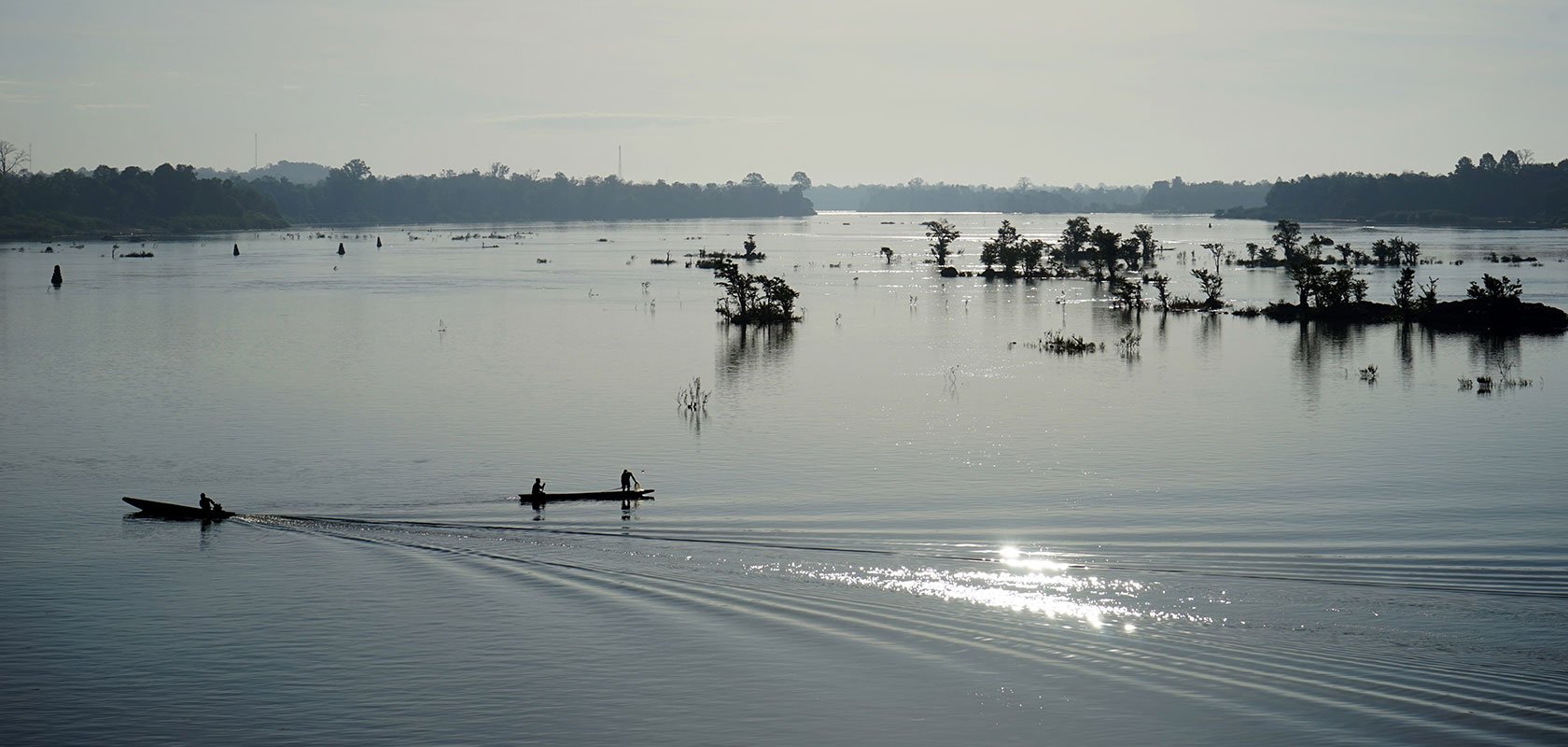 Mit dem Boot erforschen Sie die Region der 4000 Inseln. Auf seiner 4350 Kilometer langen Reise vom tibetischen Plateau zum Südchinesischen Meer erreicht der Mekong hier in der Regenzeit eine maximale Breite von bis zu 14 Kilometern. Wenn sich der Fluß dann wieder zurückzieht, tauchen tausende Inselchen im Fluss auf.