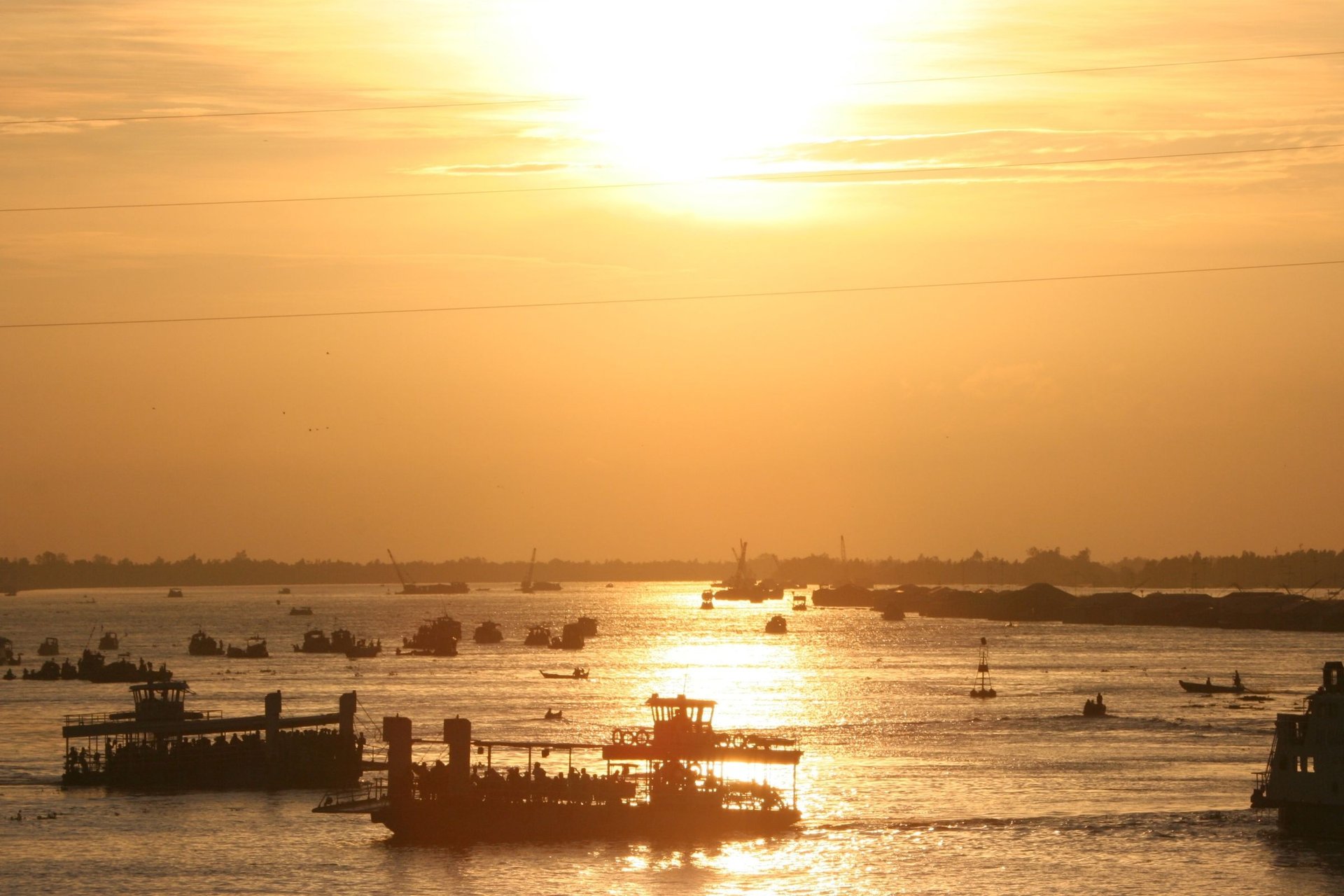 Bei Sonnenuntergang lädt uns die Crew zum Abschiedstanz, bevor wir zum letzten Mal zum Abendessen an Bord gebeten werden. Bei My Tho ankern wir für die Nacht.