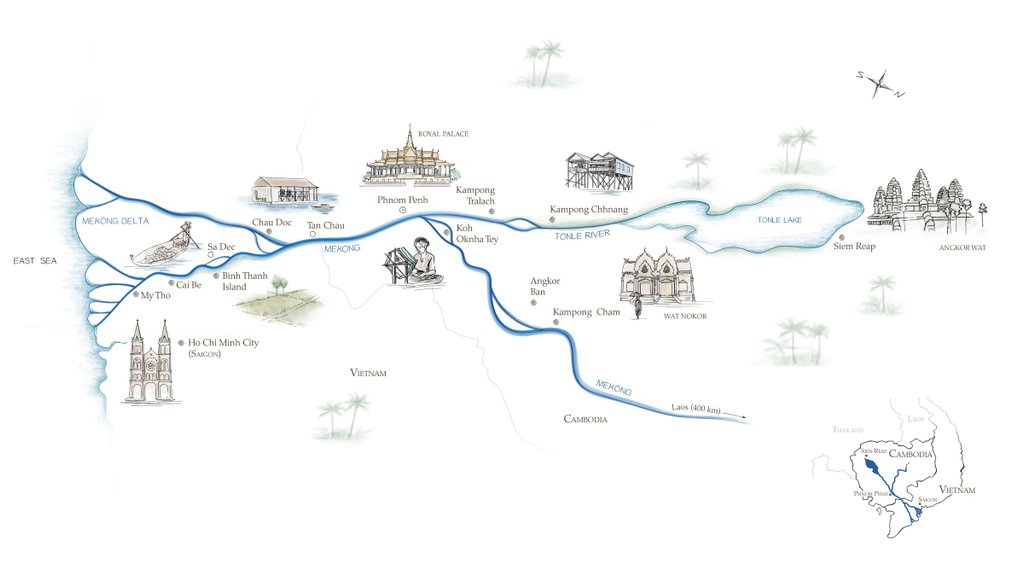 Tonle Sap Kampong Chhnang Kampong Tralach Kampong Cham Angkor Ban Phnom Penh Tan Chau My An Hung Binh Thanh Island Cai Be My Tho Saigon