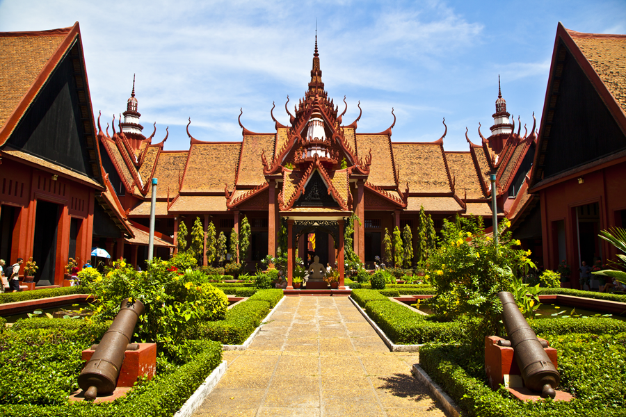 Das Ausflugsprogramm beginnt jedoch mit einer Exkursion in die dunkle Geschichte des Landes. Es geht zu den Killing Fields außerhalb der Stadt und ins zentral gelegene Tuol Sleng Gefängnis S21, wo an die grausamen Ereignisse während der Herrschaft des Pol Pot Regimes erinnert wird. Alternativ kann die kambodschanische Hauptstadt am Morgen auf eigene Faust erkundet werden, bevor Sie sich der Gruppe zum Mittagessen in einem guten Restaurant der Stadt wieder anschließen.