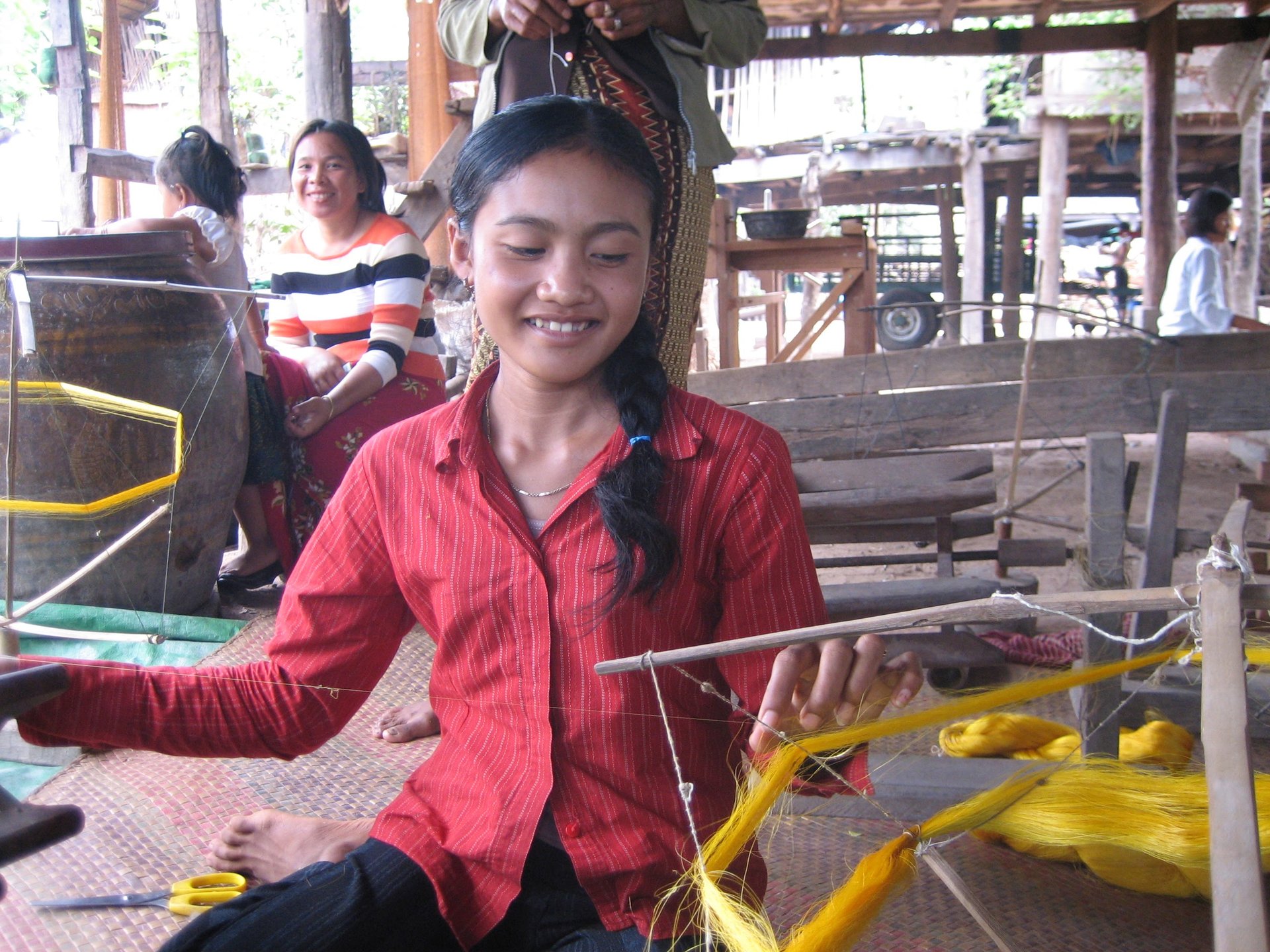 An Bord zeigen die Mitarbeiter von Heritage Line die Vielfalt der traditionellen Khmer Mode, bevor wir auf der Insel Koh Oknha Tey anlegen. Der Ort mitten im Mekong ist bekannt für seine augezeichneten Seidenproduke. Mit dem Tuk Tuk erkunden wir das Dorf, werfen einen Blick "hinter den Vorhang" und lernen wie Seide traditionell hergestellt und verarbeitet wird.