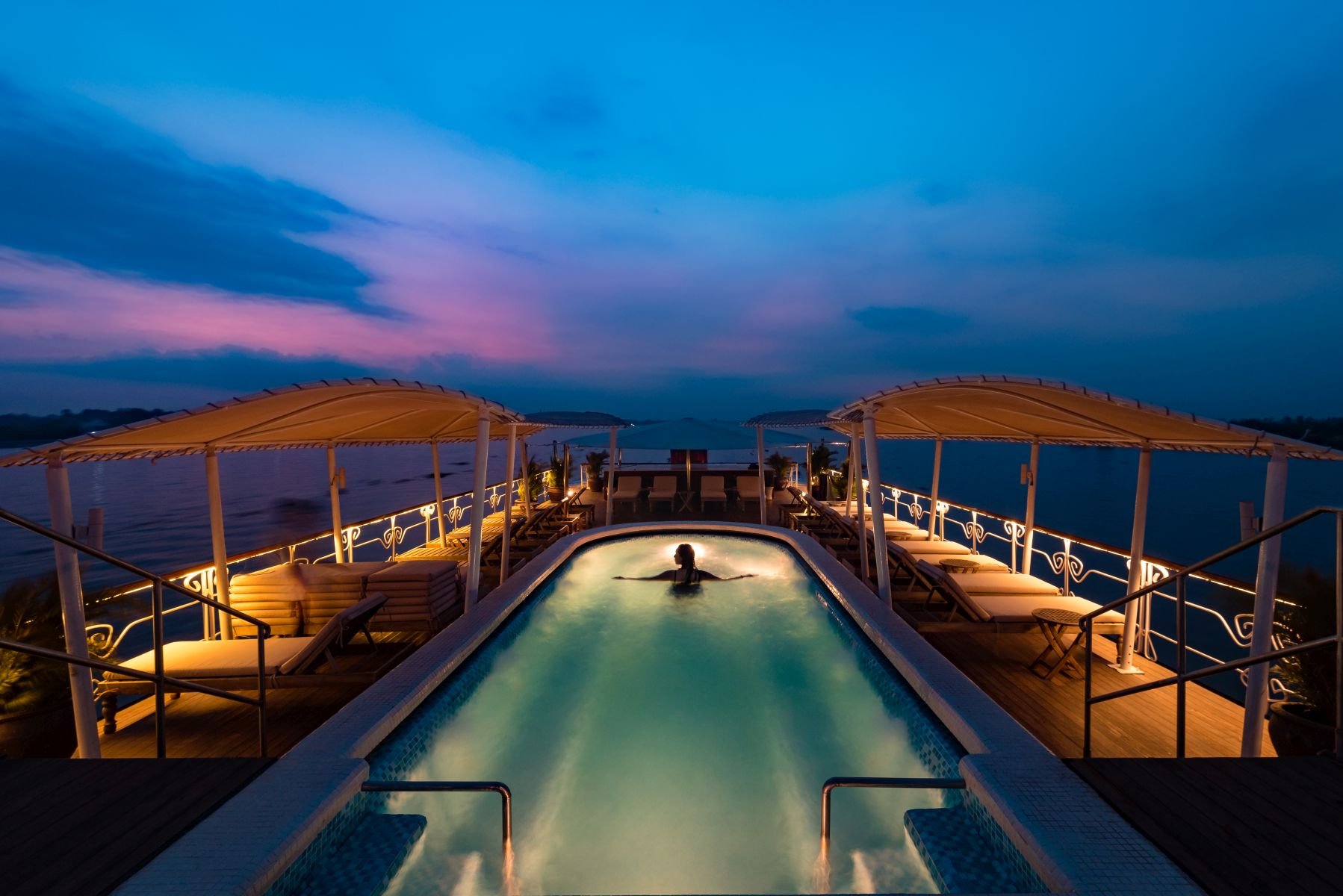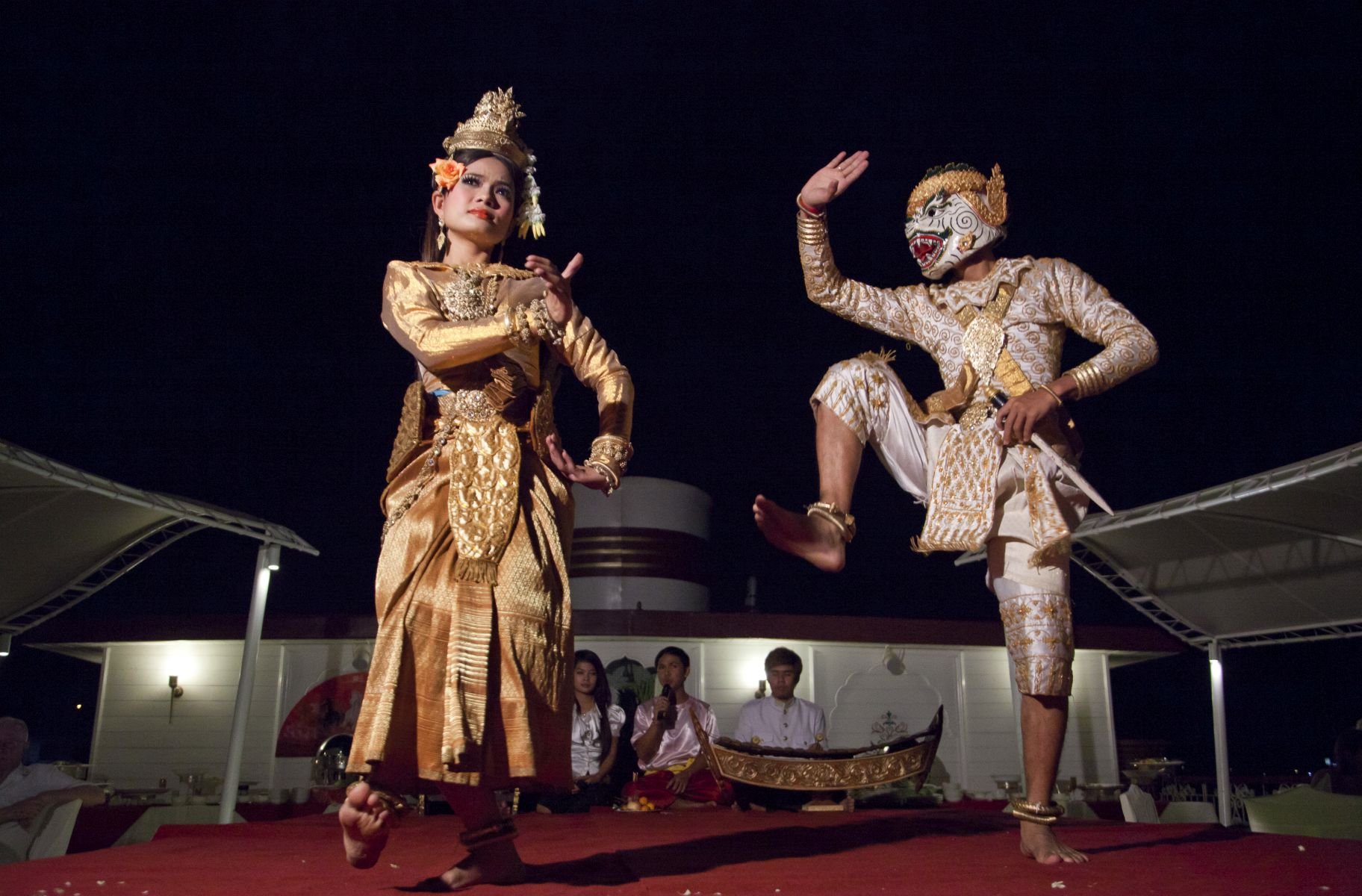 Zurück an Bord ist Zeit für Erholung und zur Vorbereitung auf das Barbecue-Dinner am Sonnendeck. Das Abendessen wird von einer beeindruckenden traditionellen Apsara-Tanzvorführung begleitet.