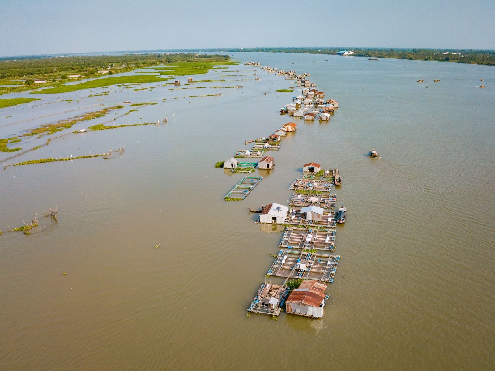 Mit lokalen Booten fahren wir vorbei an schwimmenden Häusern zu einer lokalen Fischfarm, wo wir einen exklusiven Einblick in die Zucht erhalten. In der Region wird schließliche Fisch produziert, der in die ganze Welt exportiert wird.