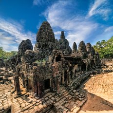 Nach dem Mittagessen in einem lokalen Restaurant führt die Tour weiter zur faszinierenden Königsstadt Angkor Thom. Dort sehen Sie das prächtige Südtor, den geheimnisvollen Bayon mit seinen 216 lächelnden Gesichtern, den pyramidenförmigen Baphuon sowie die kunstvoll gestalteten Elefanten- und Leprakönigsterrassen. Jede dieser Stätten erzählt eindrucksvoll von der glanzvollen Geschichte des historischen Angkor.