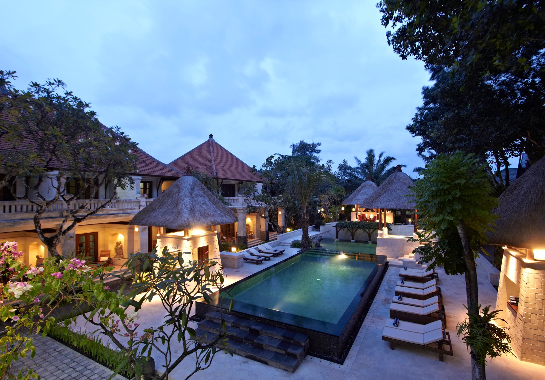 Die Anlage direkt am Sandstrand von Sanur bietet mehrere Restaurants und Pools im tropischen Garten, Wäscheservice, Bar, Bibliothek und Shop. Das umfangreiche amerikanische Frühstück wird als Buffet angeboten und gegen Gebühr werden Massagen, Spaanwendungen, Fahrradtouren und verschiedene Sportarten angeboten.