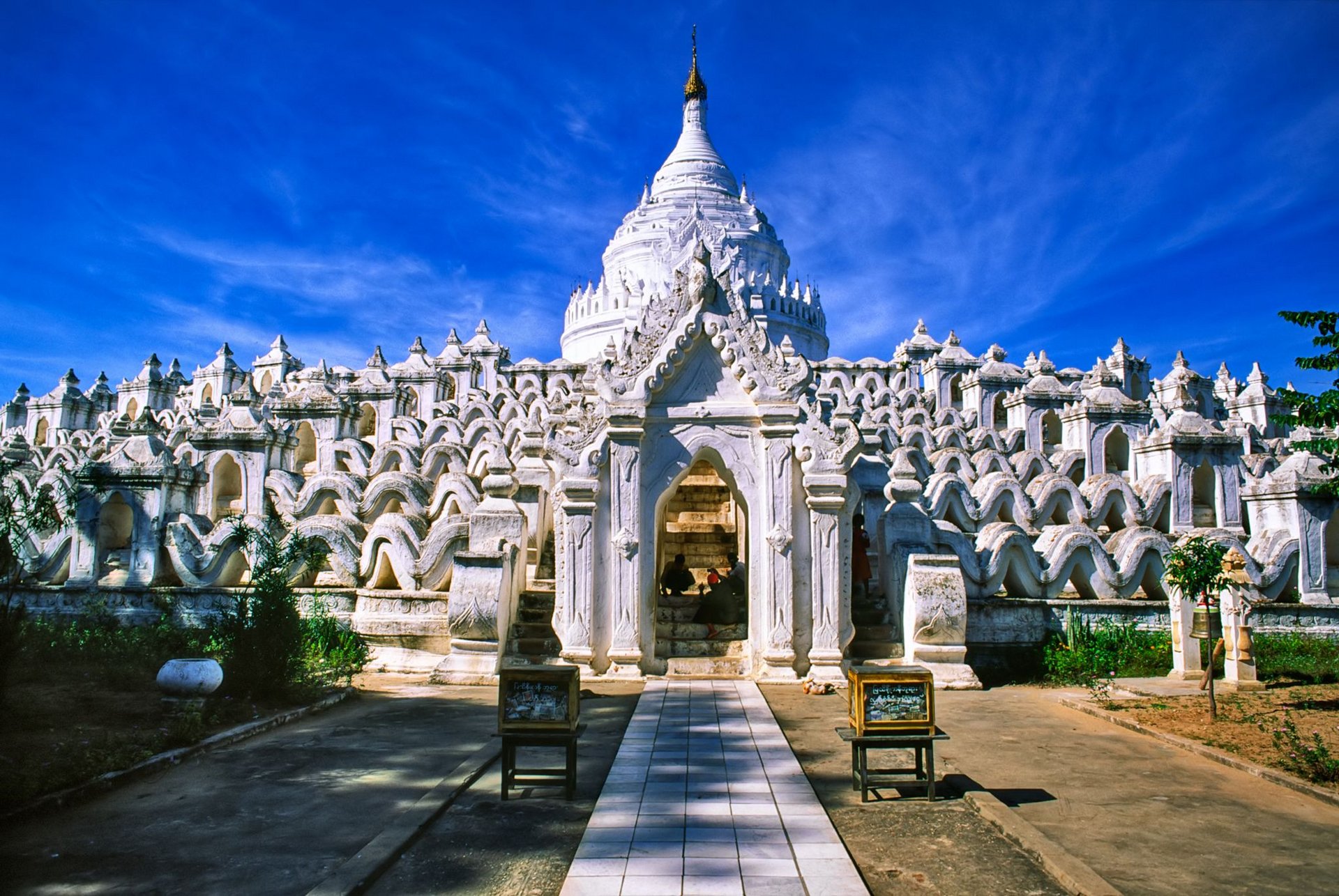 Bei der umfassenden Tour durch Mandalay geht es dann zur Mahamuni Pagode, die ein spektakuläres Buddhabildnis, bedeckt von einer 15 cm dicken Goldschicht, beherbergt. Am Fluss besuchen Sie ein altes Holzkloster mit wundervollen Schnitzereien und dann wartet das "größte Buch der Welt", wo das Leben Buddhas auf 729 weißen Marmorplatten eingraviert wurde. Den Abschluß bildet das Shwenandawkloster der einzige Königspalast, der die Bombardierung im 2. Weltkrieg überstanden hat und ursprünglich komplett aus vergoldetem Teakholz erbaut war.