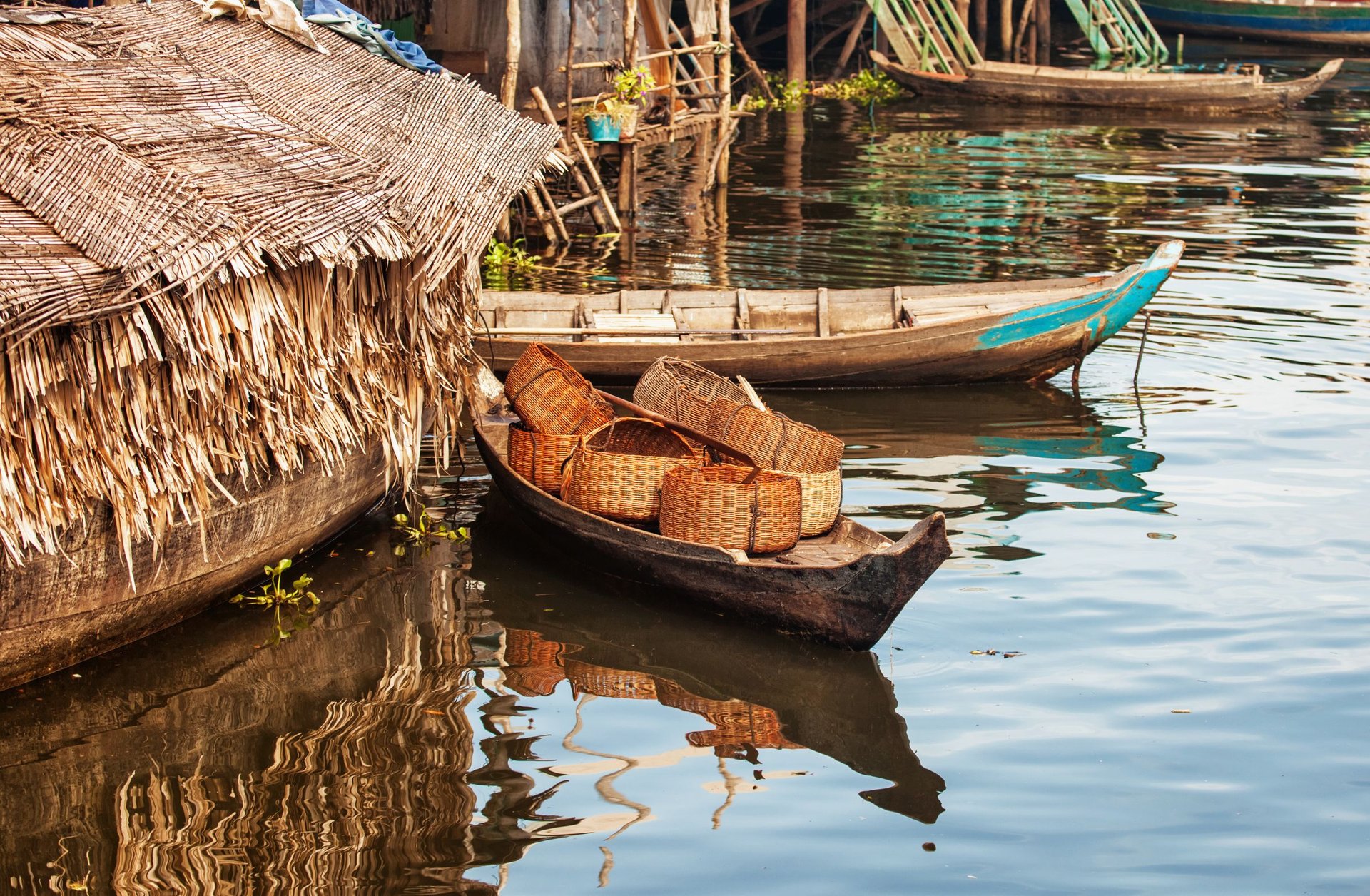 Fliegen Sie die kurze Strecke zum neuen Flughafen der Stadt Siem Reap, vor deren Toren sich die Tempelanlagen von Angkor befinden. Sie beginnen mit einem Ausflug und einer Bootstour am Tonle Sap See, dem größten Süßwassersee Südostasiens. Die Häuser werden hier mindestens fünf Meter über dem trockenen Boden gebaut, um sich an den Wasserspiegel des Sees anzupassen. Diese einzigartige Architektur wird vor Ort „Bambus-Wolkenkratzer“ genannt. Die Schmelzwassermengen des Mekong beeinflussen das Ökosystem der gesamten Region. Während der Trockenzeit (ca. Februar bis Juli) ist der See nur einen Meter und etwa 2.700 km² groß. In der Regenzeit (ca. August bis Dezember) steigt die wasserbedeckte Fläche auf 16.000 km² an. Die Bewohner der Dörfer leben hauptsächlich vom Fischfang, doch das Wasser des Sees war eine wichtige Grundlage, damit die Tempelanlagen der Region entstehen konnten.