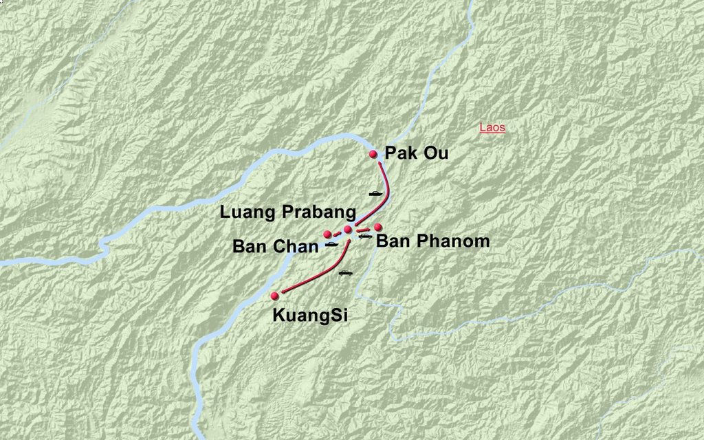 Stationen der Route: Luang Prabang Pak Ou Höhlen Kuang Si Wasserfälle traditionelle Dörfer um Luang Prabang