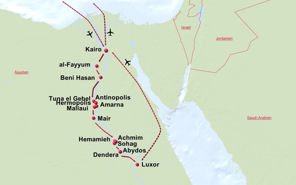 Kairo Museum und Ruinen von Kom Auschim Karanis Medinet el-Fayum Hawara Illahun Minia Museum Mallaui Tuna el-Gebel Antinoopolis Amarna Gräber von Schech Said Tehna El-Babein Beni Hassan Zawjet el-Meitin Felsgräber Meir El-Hammamiye Sohag Achmim Hawawish Abydos Dendera Luxor Theben West Kairo