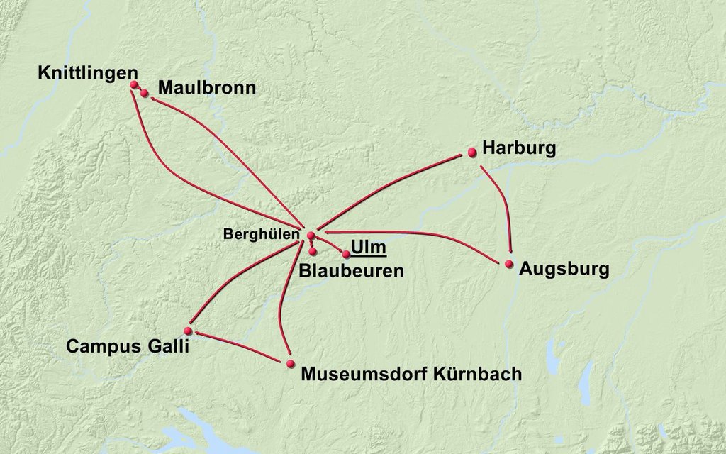 Ulm Campus Galli Museumsdorf Kürnbach Kloster Maulbronn Faustmuseum Knittlingen Stadt Ulm Asch Blaubeuren Burg Harburg Augsburg Ulm