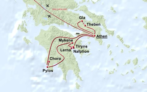 Diese Reise führt zu allen vier großen Palastzentren, der mykenischen Kultur und zu weiteren Ausgrabungsstätten, die zeigen welche einzigartigen Leistungen diese Hochkultur vollbracht hat. Es wurden riesige Festungsmauern geschaffen, Sümpfe entwässert, kilometerlange Dämme und antike Schnellstraßen erbaut. In Museen bewundern Sie die Funde dieser Epoche und staunen über die Kunstfertigkeit dieser Menschen. Wir diskutieren gemeinsam, warum diese Kultur so rätselhaft und unvermittelt verschwand und spazieren auf deren Spuren durch die griechische Landschaft. Das Programm ist so gestaltet, dass genug Zeit bleibt, um die einzelnen archäologischen Stätten nicht nur oberflächlich zu besichtigen, sondern in ihrer historischen und kulturellen Bedeutung voll erfassen zu können. Kontaktieren Sie uns für das Detailprogramm zur Reise!