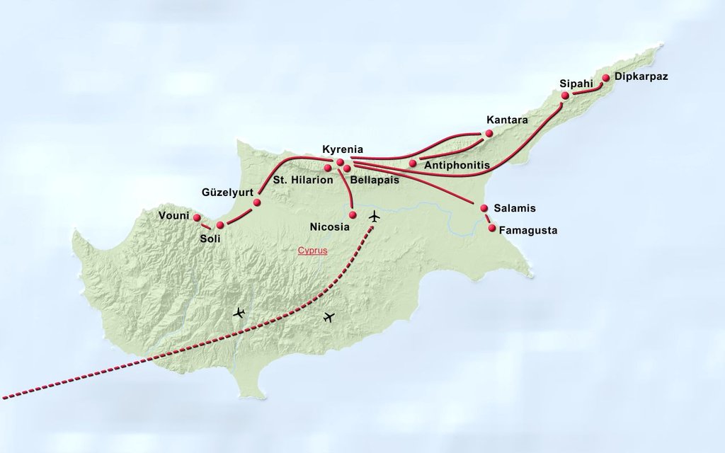 Kyrenia Bellapais Karpaz-Halbinseln St. Hilarion und Nicosia Barnabas Kloster Salamis Famagusta Kantara Büyükkonuk Antiphonitis Güzelyurt Soli Vouni