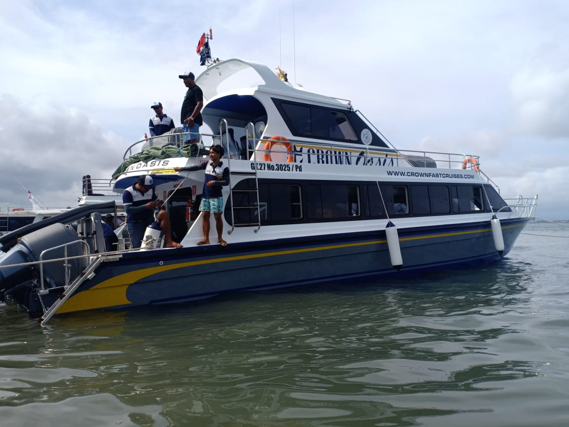 Der Transfer bringt Sie vom Süden Balis zur Bootsabfahrtsstelle in Sanur. Eine kurze Überfahrt von ca. 45 Minuten und schon erreichen Sie mit dem Crown Cruise Schnellboot die kleine Nachbarinsel Balis.
