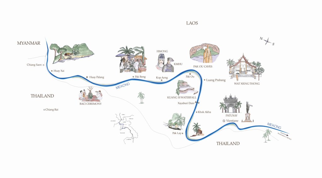 Mit dem Luxusflussschiff Anouvong fahren Sie auf der "Mutter aller Flüsse", dem Mekong von der thailändischen Grenze nach Luang Prabang. Queren Sie das legendäre Goldene Dreieck und genießen Sie den Aufenthalt auf einem außergewöhnlichen brandneuen Boutiqueschiff. Heritage Line steht für ein einzigartiges Kreuzfahrterlebnis - persönlicher Service, aufmerksam geführte Ausflüge, spannende Vorträge. Eine tolle Reise!