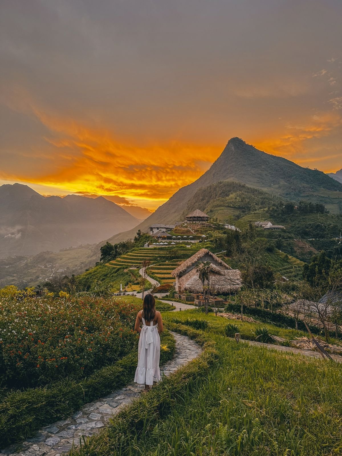 Am Morgen holt Sie ein bequemer Minibus vom Hotel in Hanoi ab und nach etwa fünf Stunden erreichen Sie die Topas Ecolodge. Nachdem Sie in Ihrem Bungalow eingecheckt haben, genießen Sie die Aussicht auf die umliegenden Berge und Täler von Ihrem privaten Balkon. Am Nachmittag beginnt die geführte Wanderung von der Ecolodge auf einer ruhigen Straße mit Blick auf die Reisterrassen. Sie wandern leicht bergauf zum Dorf Lech, besuchen ein Holzhaus der Einheimischen und lernen die freundlichen Gastgeber der Roten Dao kennen. Die Frauen der Roten Dao rasieren sich auch heute noch Haare und Augenbrauen und tragen farbenfrohe Gewänder. Auf dem Rückweg zur Ecolodge wandern Sie an Reisterrassen vorbei, überqueren eine Hängebrücke und ihr Reiseleiter erklärt Ihnen die Anbaukultur der örtlichen Bauern.